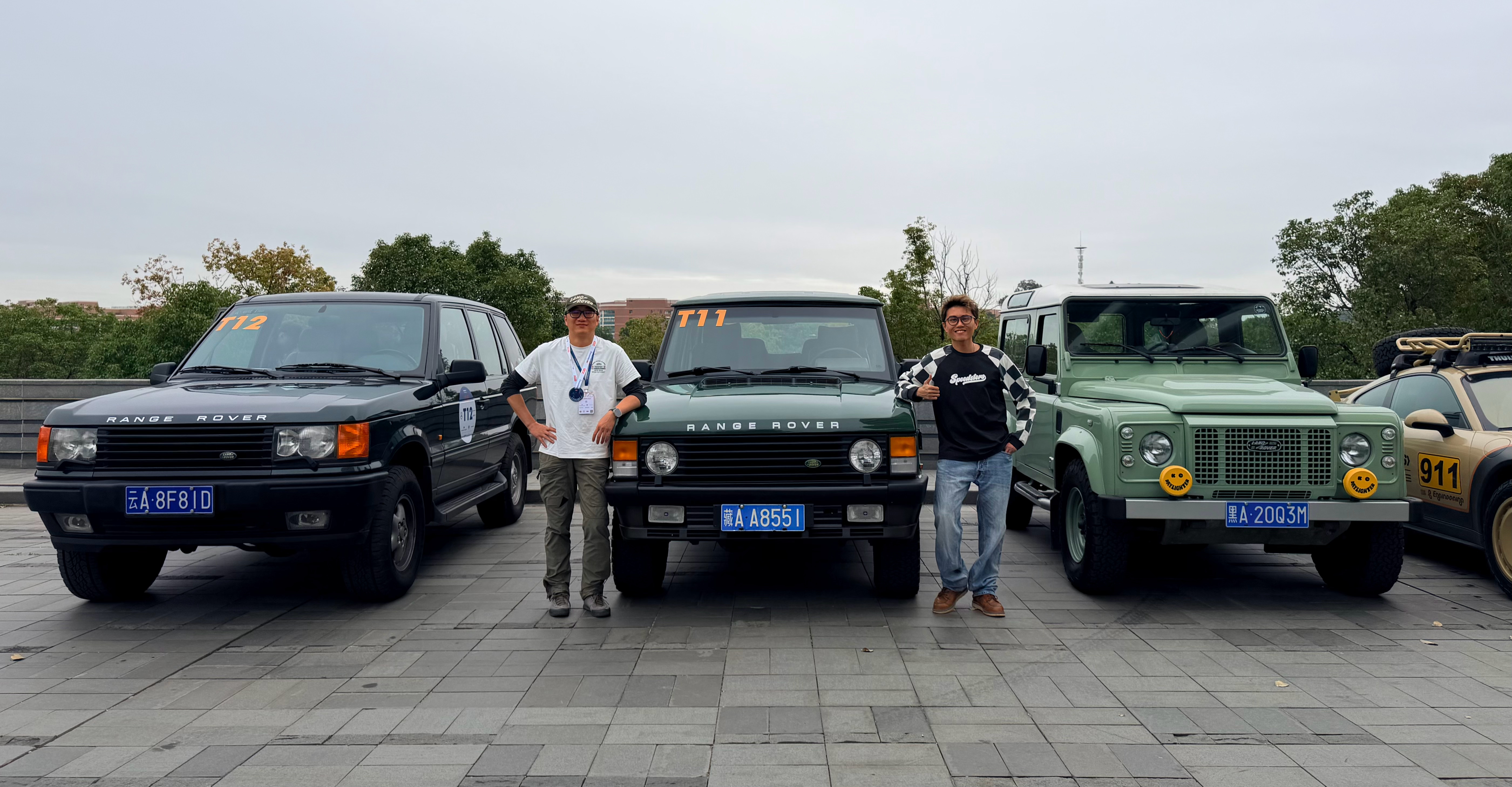 中国第一台揽胜+地球最漂亮老卫士的合影广州