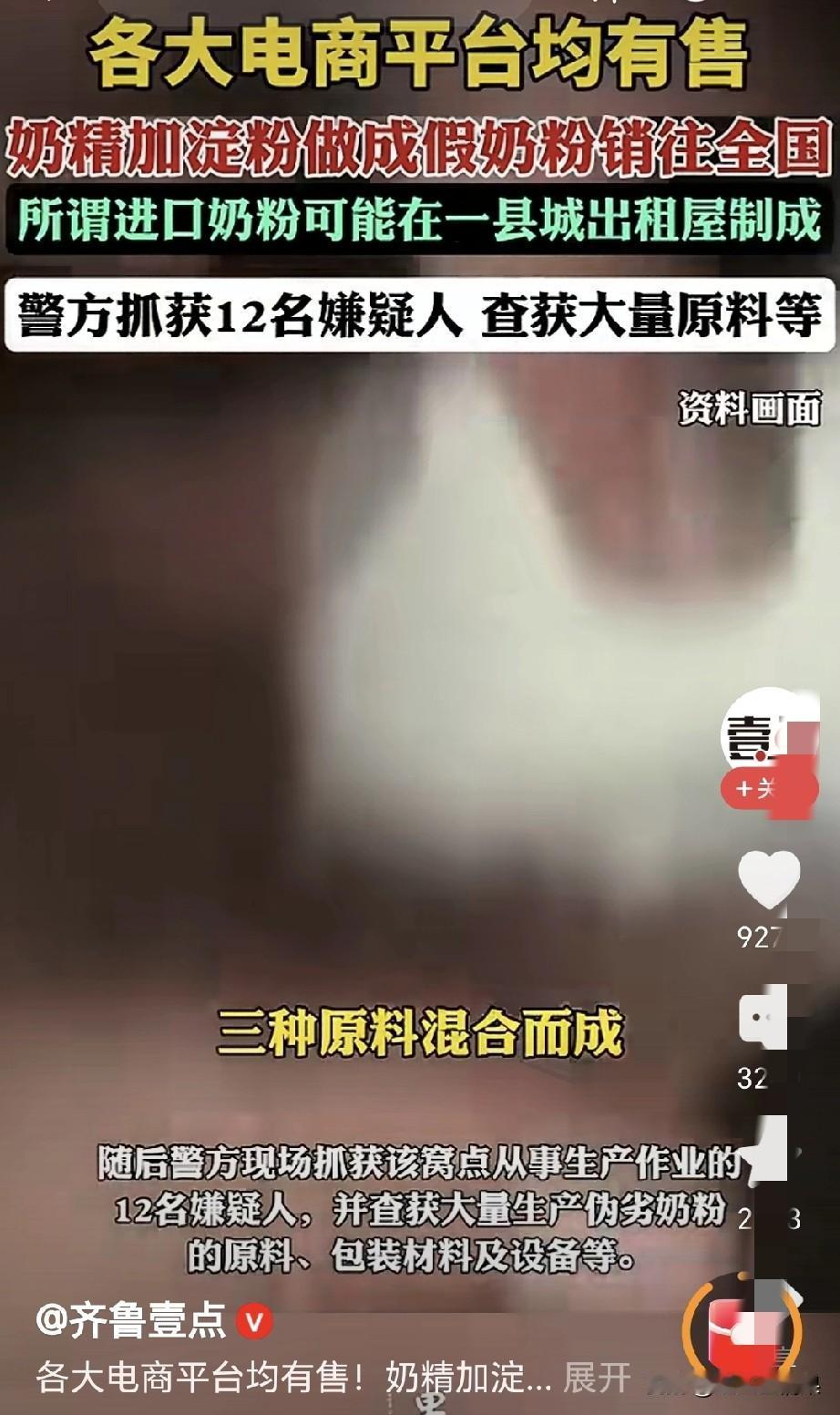 都2025年了居然还有人制作假奶粉,冒充进口奶粉,还在全国电商平台销售。 真的不敢相信,这些人胆子真的比天大难道他们就不怕王法吗?我们的监管又在哪里,为什么能让这些恶人把假奶粉通过电商平台销售出去。 估计很多人做梦都没有想到,花高价买的所谓进口奶粉,其实就是出租屋里的小作坊制作的。这让这些消费者怎么能够接受的了,要知道这个假奶粉可是买回去给他们孩子吃的。 在奶粉这个事件上必须零容忍,主犯应该判处死刑立即执行的那种,大家支持吗?