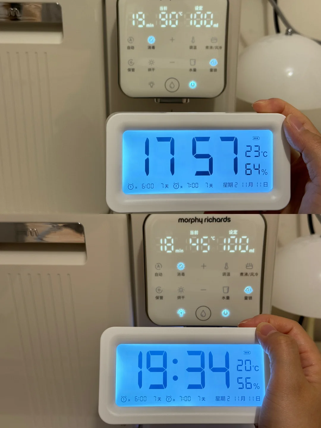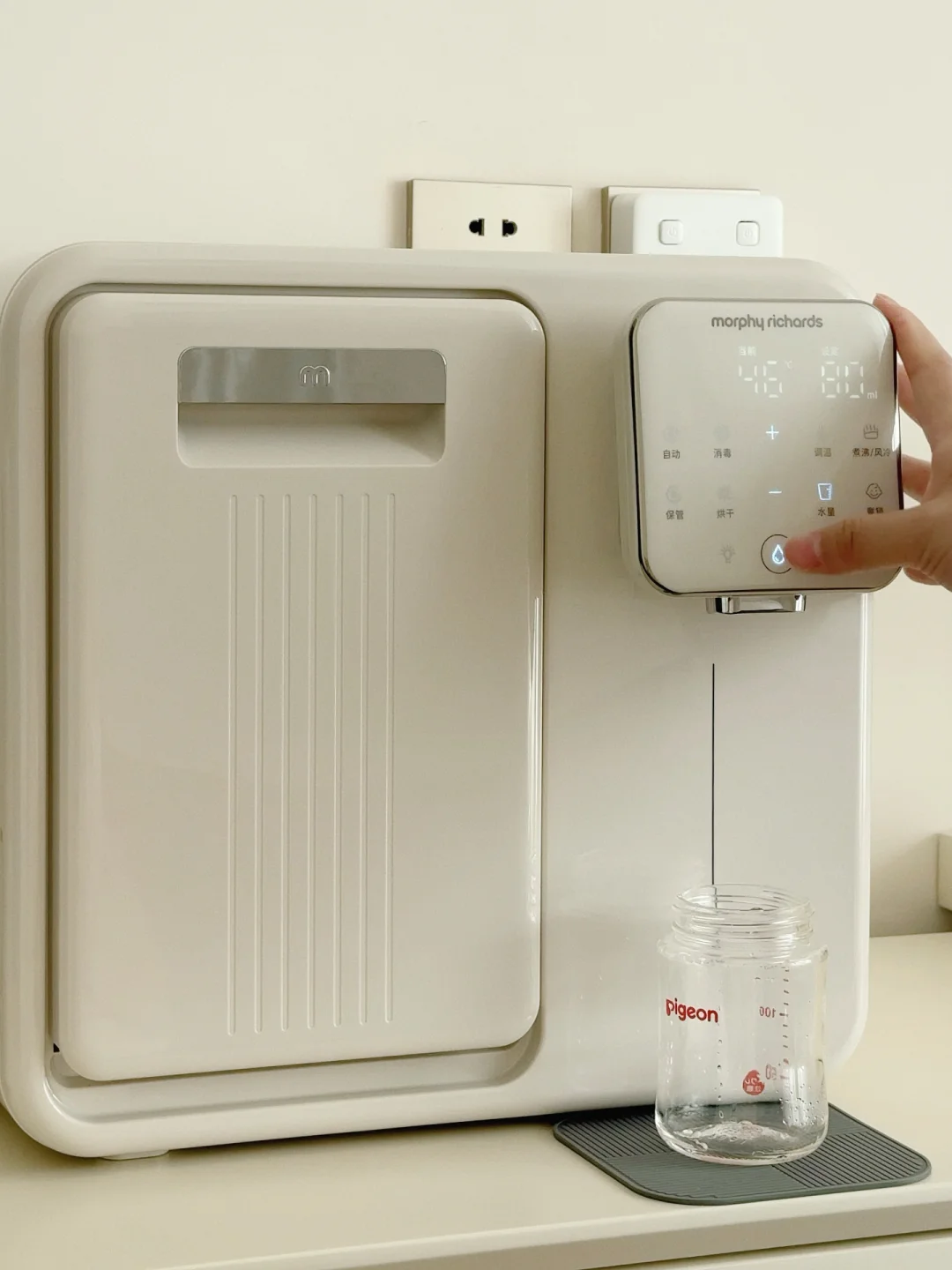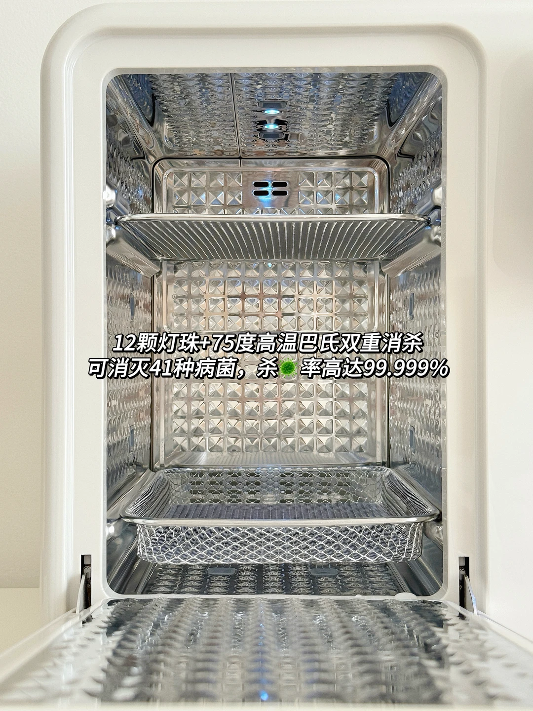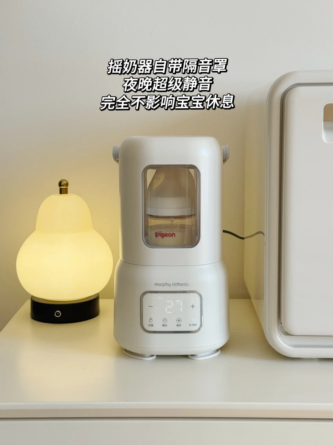 恒温舱1.6升大容量只需要一天加一次水就够宝宝一天的喝奶量而且出水口里面有一个空气泵每次都会把残水排出去这样每一滴水都是最新鲜的水对宝宝的安全更加友好~9升消毒舱放下6-7个奶瓶也是妥妥管够12颗灯珠和75℃高温巴氏双重消杀可以搞定99.999%的🦠双区独立操作,面板还特别简单易懂我妈都能使得明白我还配了他们家的摇奶器特别小巧,差不多是个保温杯的占地面积但是既能暖奶又能摇奶还搭配了静音罩 夜里是一丁点声音都听不见摇出来的奶特别均匀没有气泡!这三件套用下来我真的喜欢的不得了占地面积非常小巧而且足够满足我的日常所需爱了爱了!!