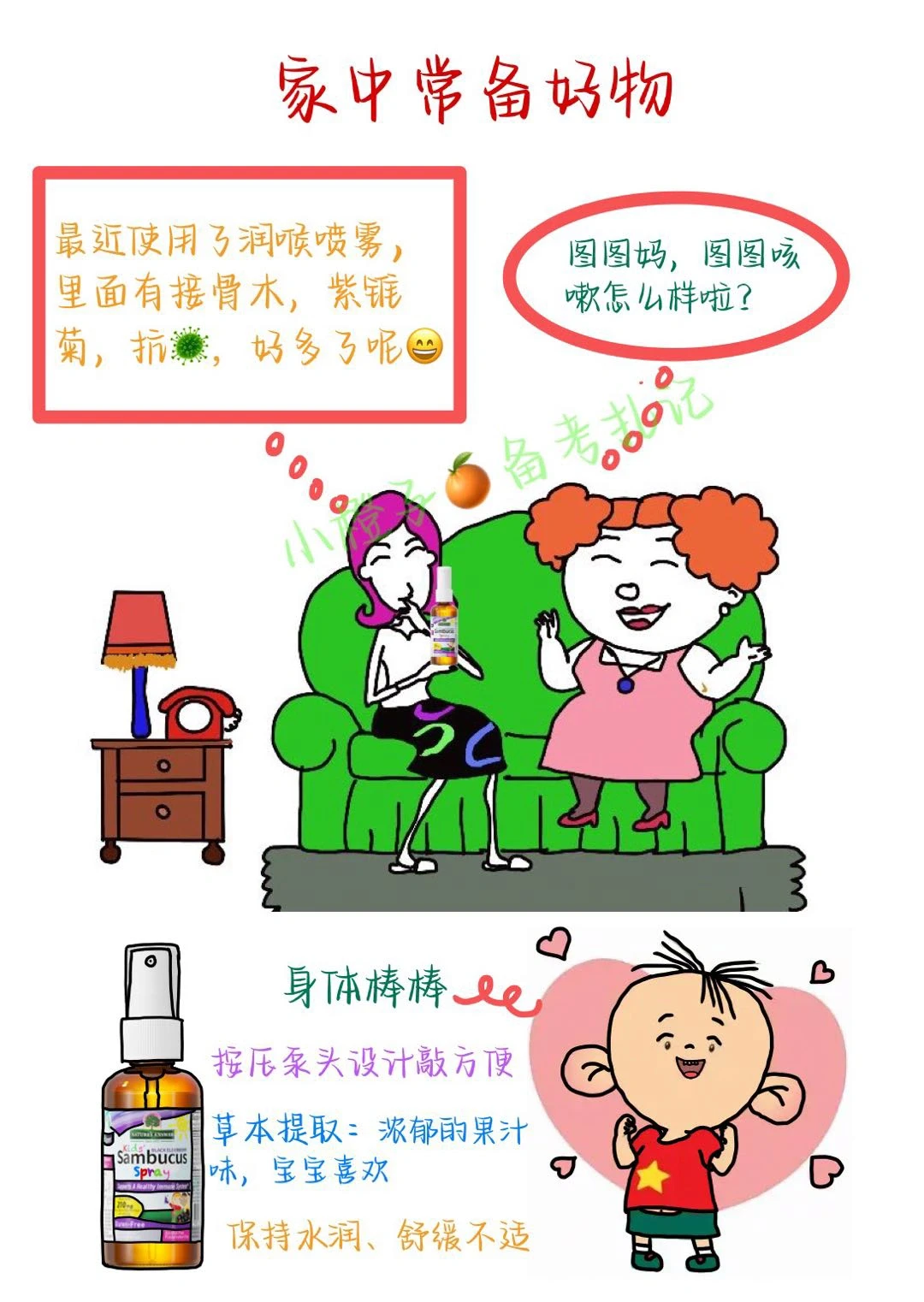 📎家中常备好物:润喉喷雾🌼按压泵头设计敲方便,其中草本提取,保持咽喉水润,舒缓不适,浓郁的果汁🍹味,宝宝喜欢😘不用担心宝宝抗拒💊啦[偷笑R]