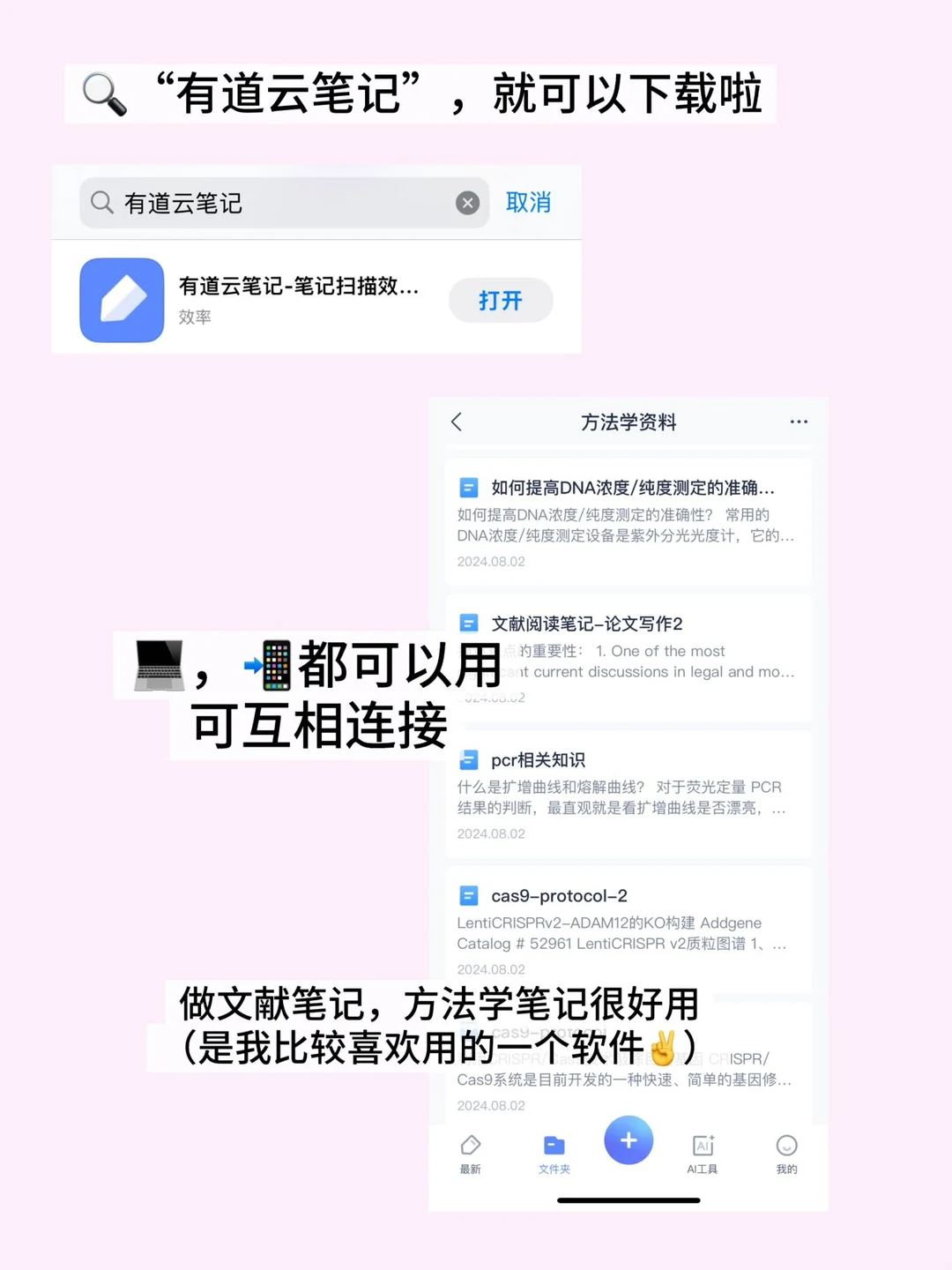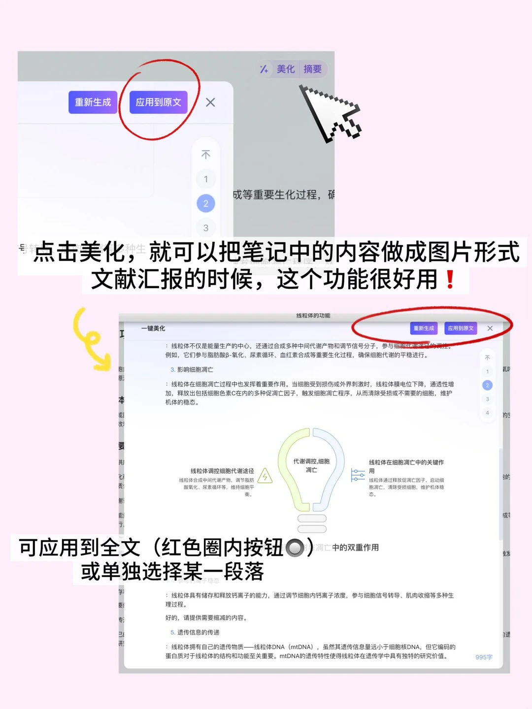 读文献很好用的一个笔记软件,可以把实验protocol,文献阅读笔记都整理在一起,而且最近新出了针对笔记的一键美化功能,可全文美化也可段落美化,直接针对文本出图,图片可以直接保存,后面文献汇报就可以用
