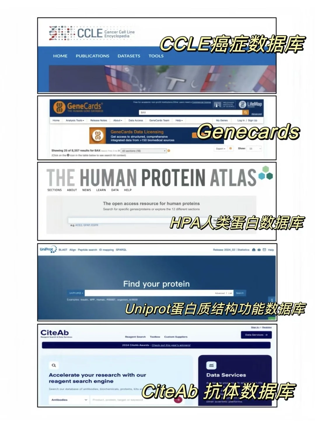 CCLE、genecards、HPA、Uniprot