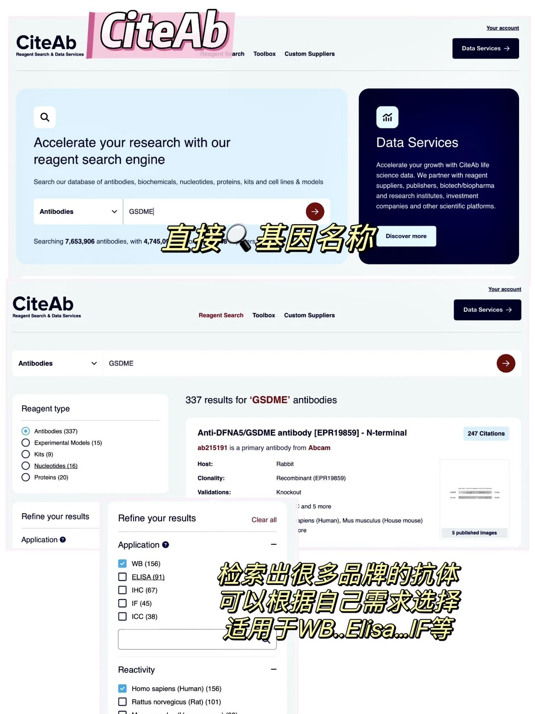 ✅实验试剂(例如:一抗二抗)查询网站: