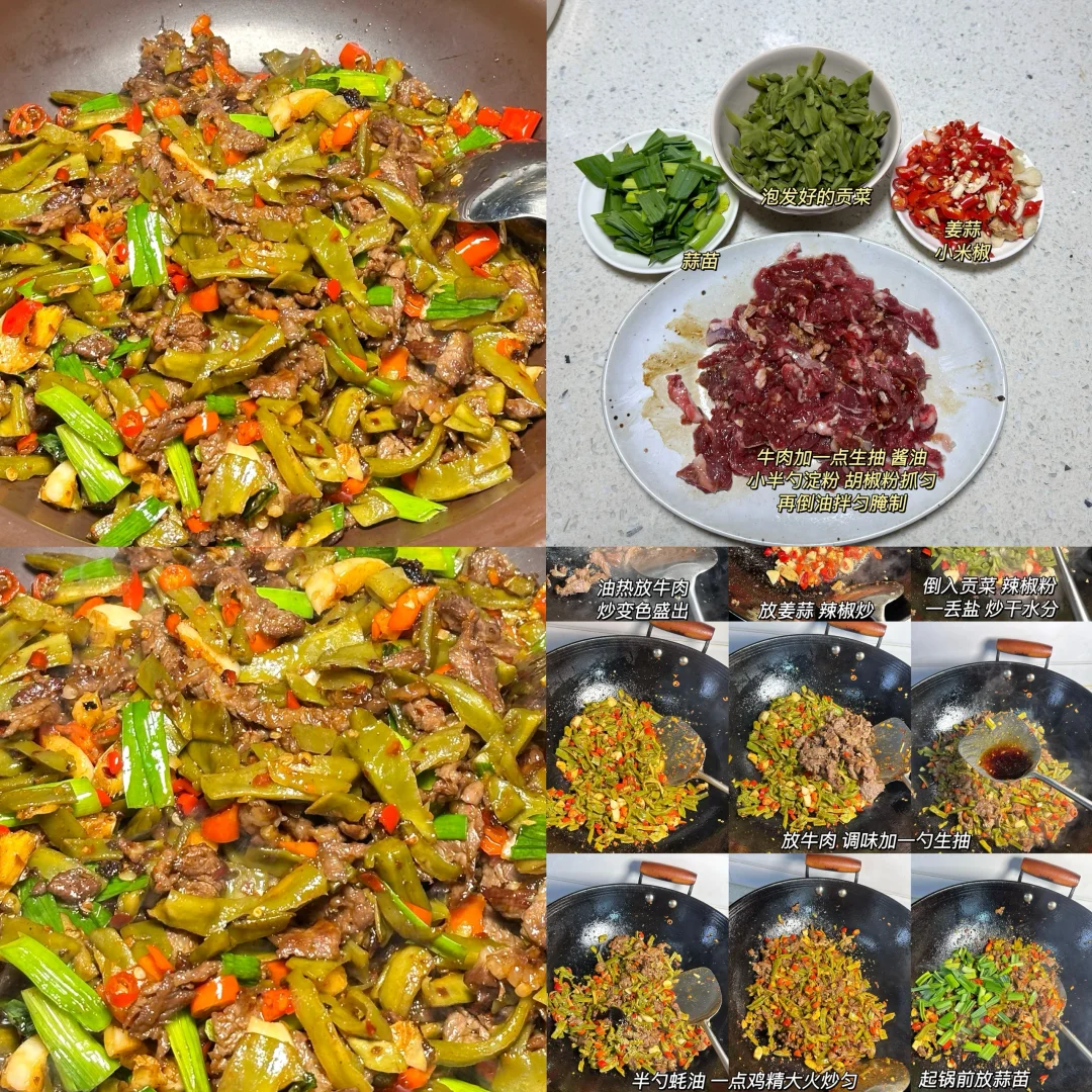 的三餐四季 1️⃣:带汤小炒黄牛肉 。做法简单快速味道超棒 2️⃣:青椒炒豆泡。青椒的鲜辣炒进豆泡里好入味 3️⃣:油爆醋炒蛋。只想说长沙人太会了[赞R] 4️⃣:酸梅排骨。最好选肋排 比外面卖的好吃~ 5️⃣:鸡公煲。按照教程试试 不好吃来我家我做给你吃[萌萌哒R] 6️⃣:贡菜炒牛肉。喜欢贡菜的一定超爱 7️⃣:干煸香菇。好吃好吃 8️⃣:萍乡小炒肉。拌饭超绝[赞R] 9️⃣:家常豆腐✔️ 好好吃饭呀🖖🏻