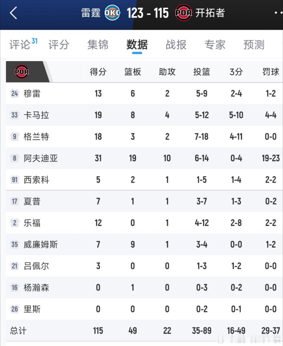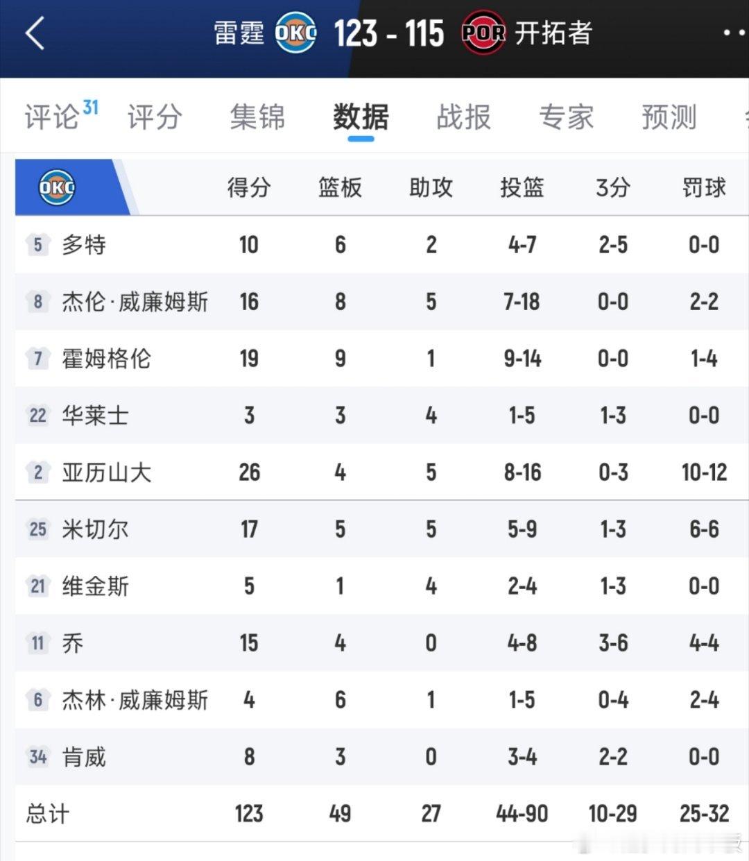 SGA末节发力,雷霆战胜开拓者豪取12连胜,战绩来到20胜1负🤯杨瀚森登场4分29秒,3中0没有得分雷霆vs开拓者