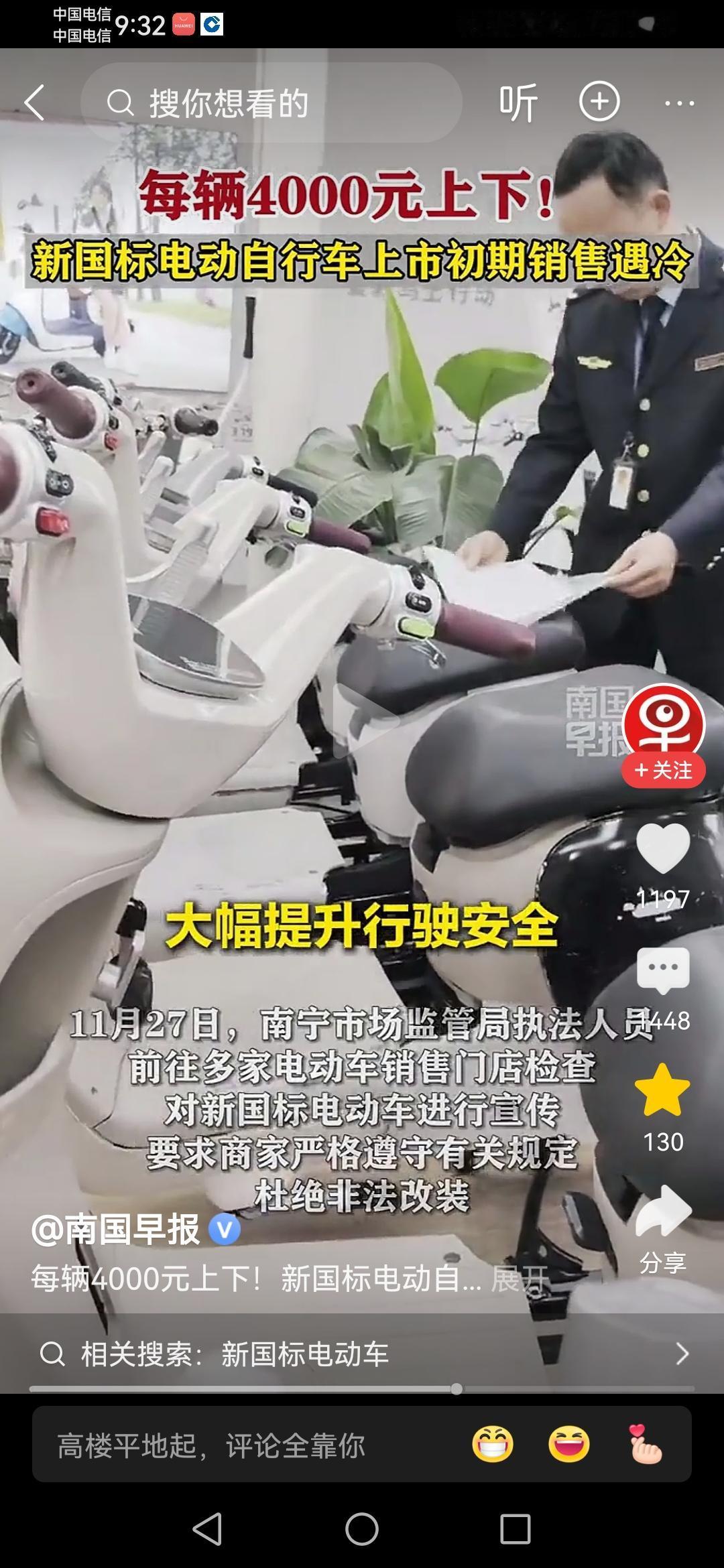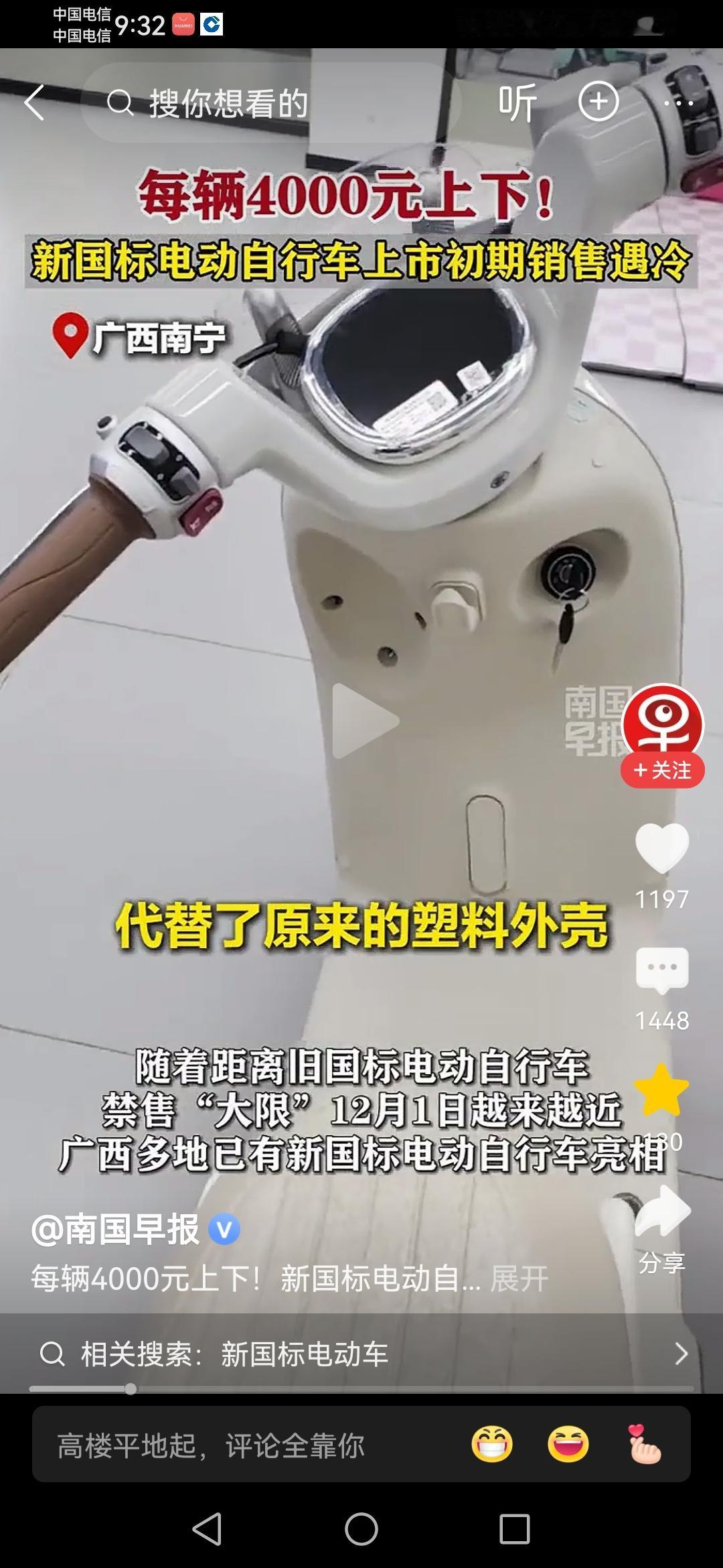 从今天开始! 我们在市面上再也买不到时速能超过25公里的电动车了。 新国标正式在12月1号落地,很多电动车的销售店根本就看不到有几辆新国标的车。原因其实可以分为三个方面。 一,很多的源头工厂目前都是在“观望”的阶段,都是在看同行出的新车,究竟长啥样,最重要的是终端消费者的接受度。 二,新国标的车子,堆料很足,但价格普遍在4000以上,比原来贵了几百上千,基本上都是走中高端路线了。 三,也就是最核心的部分,就是速度实在是有点“慢”了!电动车规定 新电动车新规