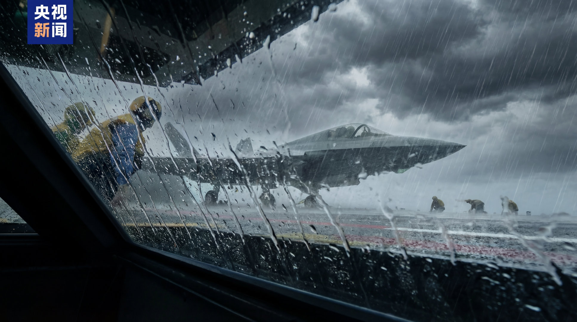 J35雨中起飞图,这图P的真好 图二是真实的舰载机雨中降落图。图源网络烽火问鼎计划