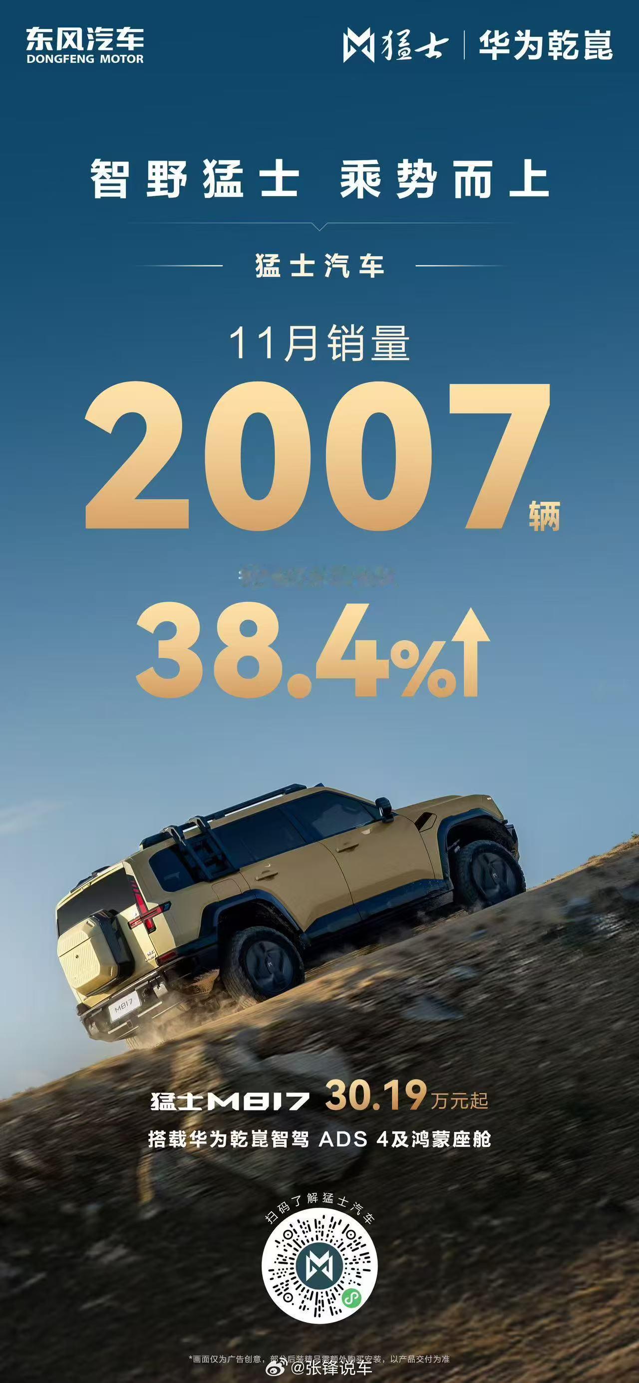 智野猛士乘势而上猛士汽车11月销量2007辆环比增长超38.4%猛士M8