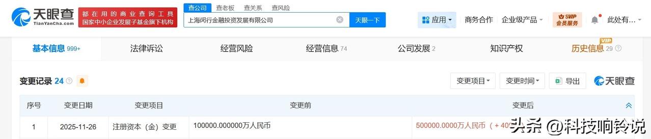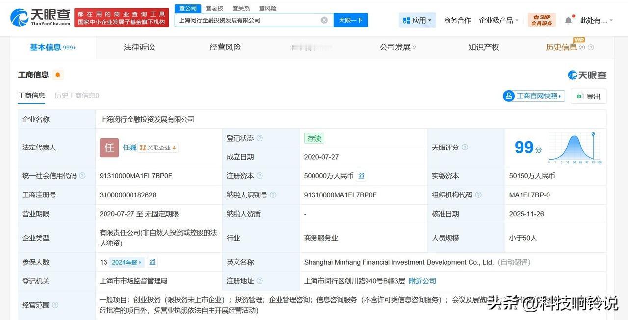 【上海闵行金融投资发展公司增资至50亿 增幅400%】 天眼查工商信息显示,近日,上海闵行金融投资发展有限公司发生工商变更,注册资本由10亿人民币增至50亿人民币,增幅400%。 该公司成立于2020年7月,法定代表人为任巍,经营范围为创业投资、投资管理、企业管理咨询、信息咨询服务、会议及展览服务、商务代理代办服务。股东信息显示,该公司由上海市闵行区国有资产监督管理委员会全资持股。 天眼查信息: