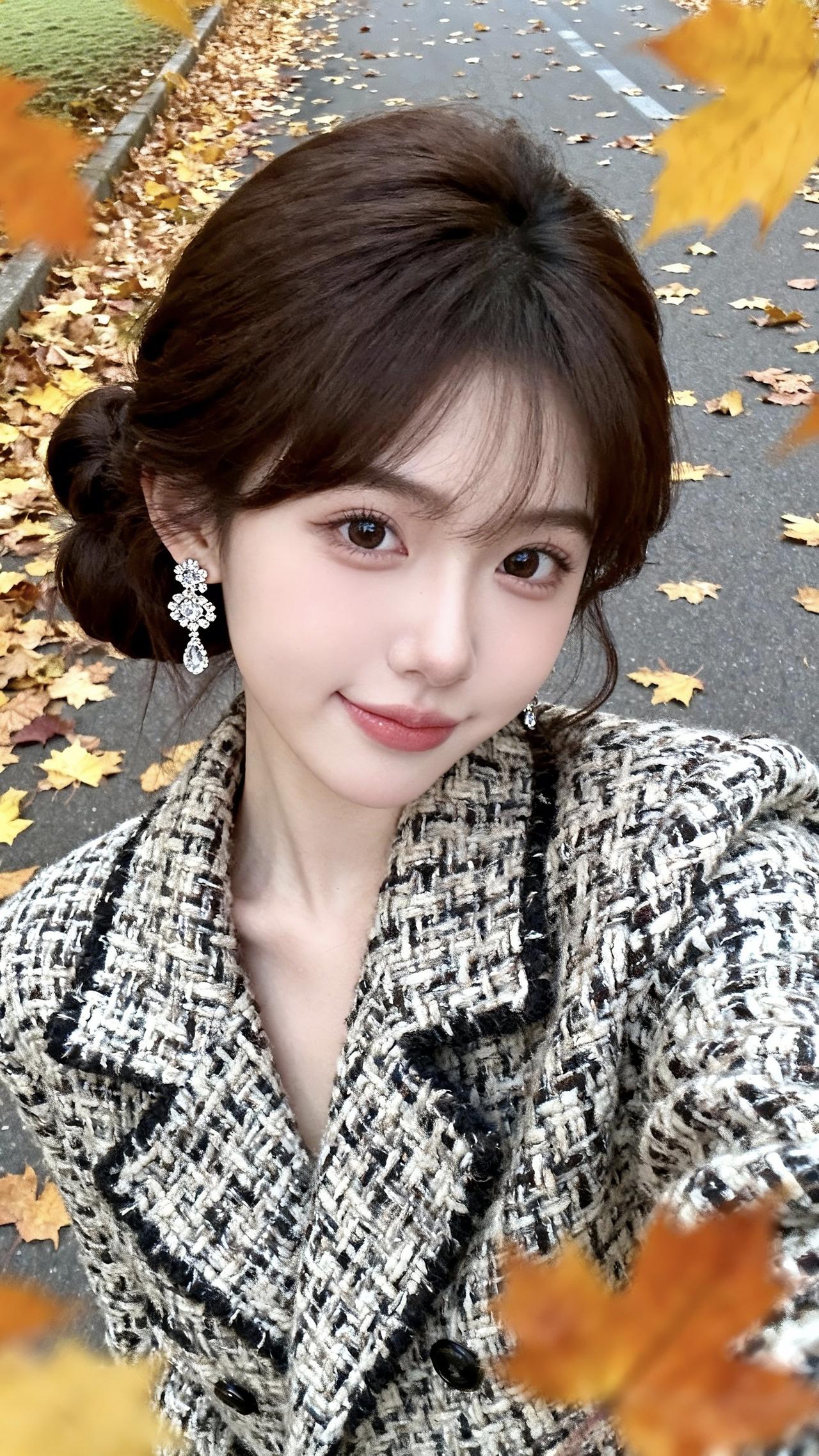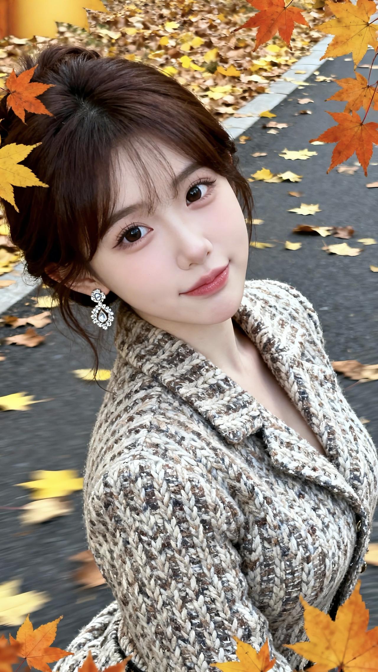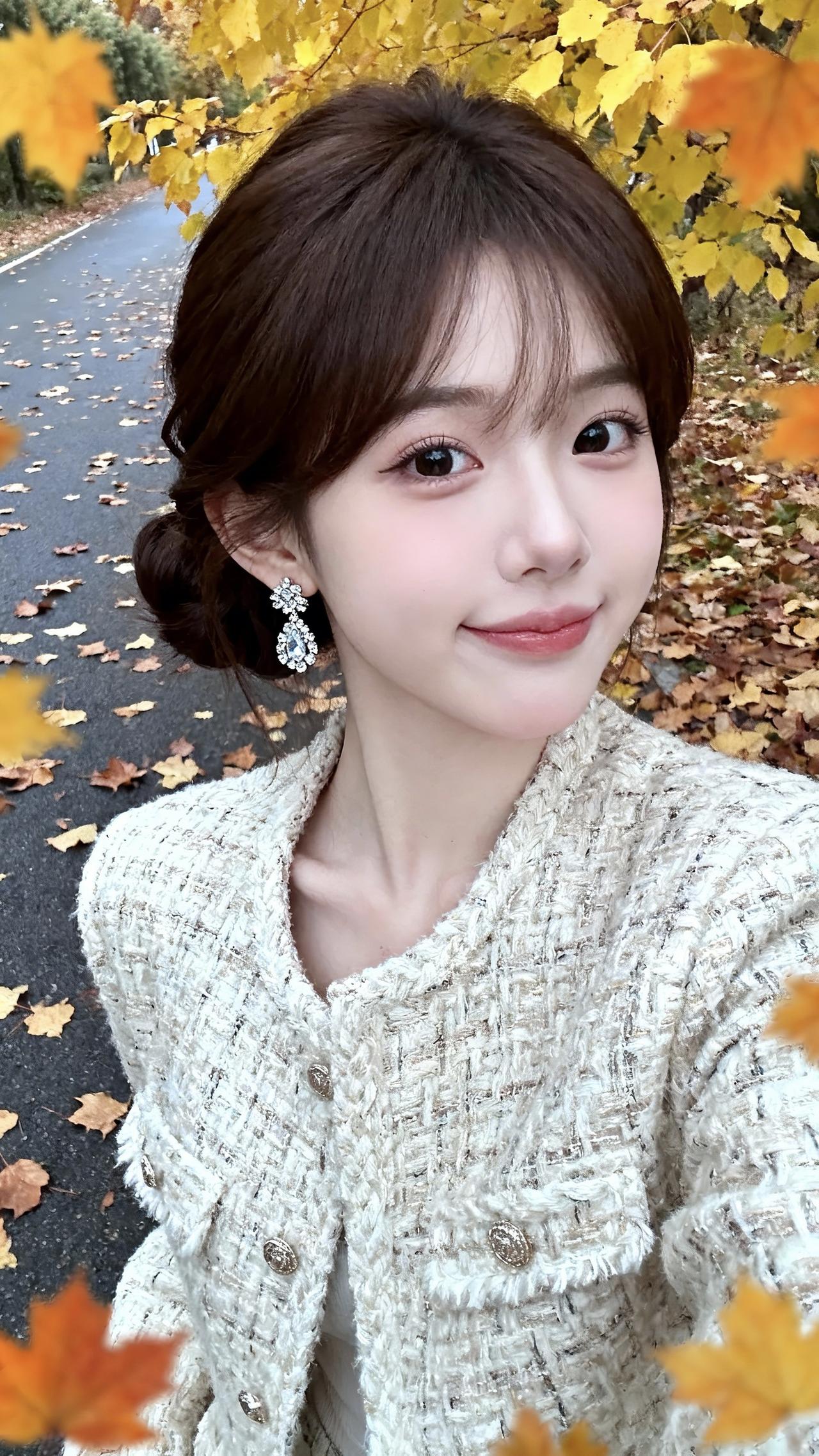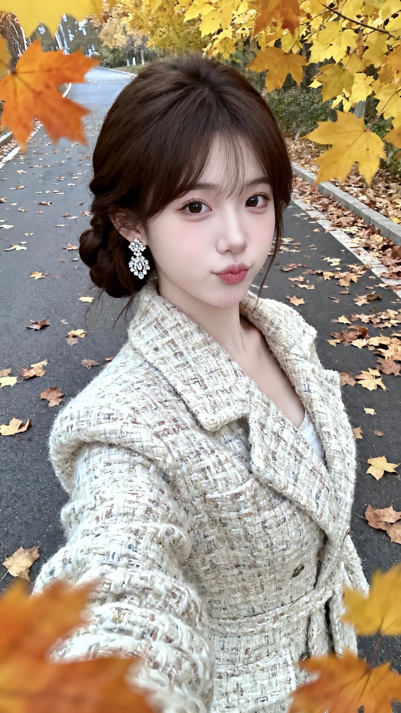 美女高清写真秋来了,树叶黄了落了,毛衣也穿上了