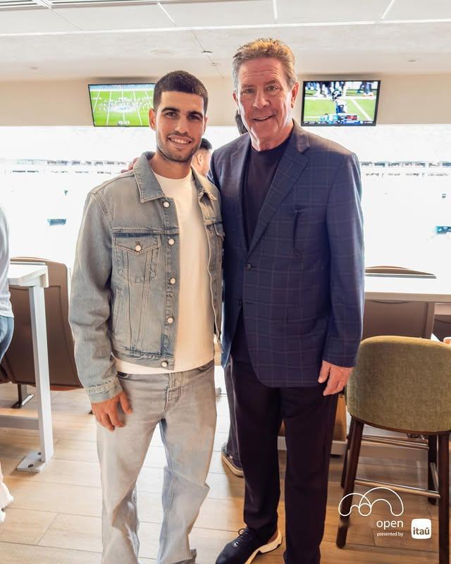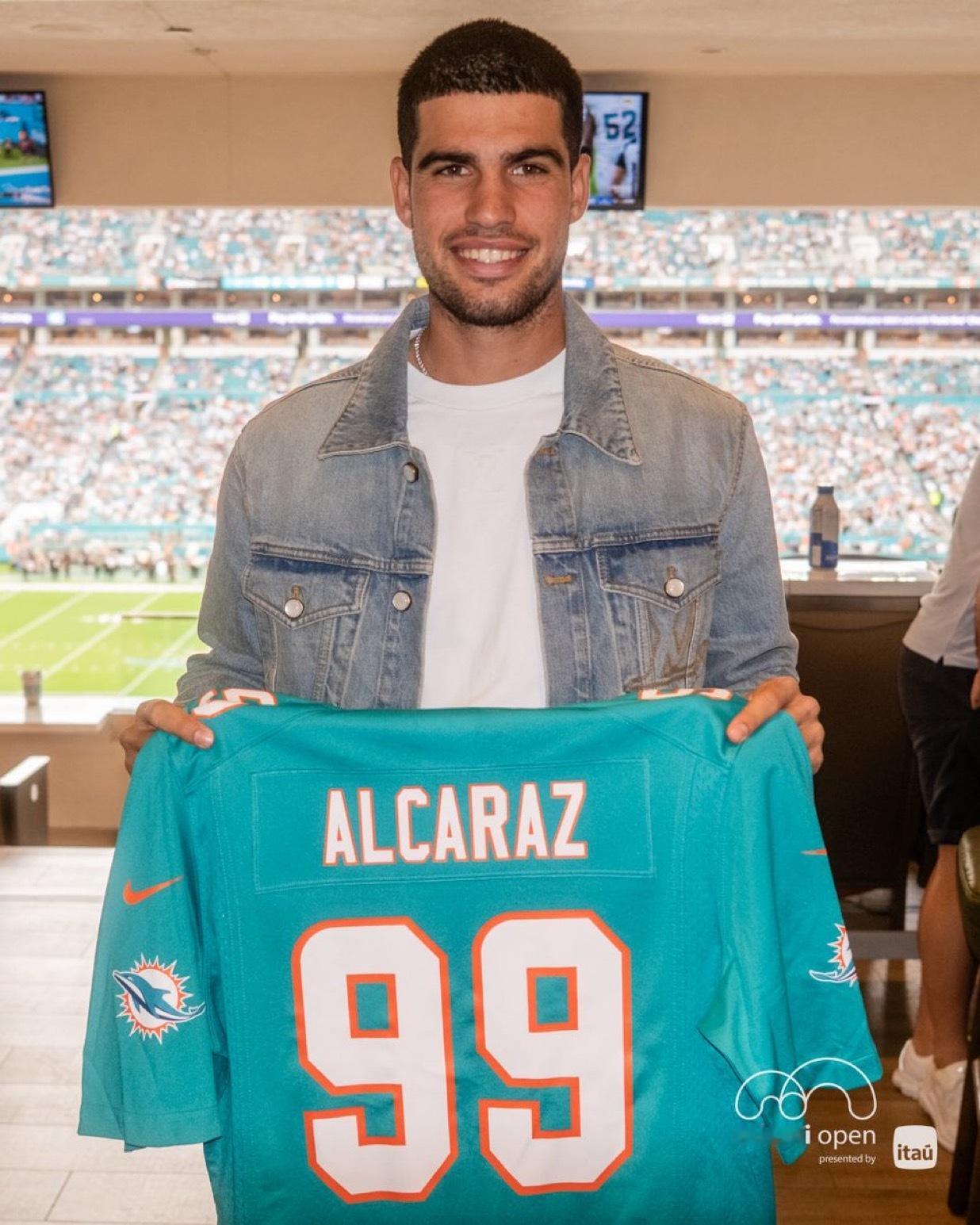 今日份在迈阿密的“观众”阿尔卡拉斯。观看海豚队和圣徒队之间的NFL比赛🏈🖼️