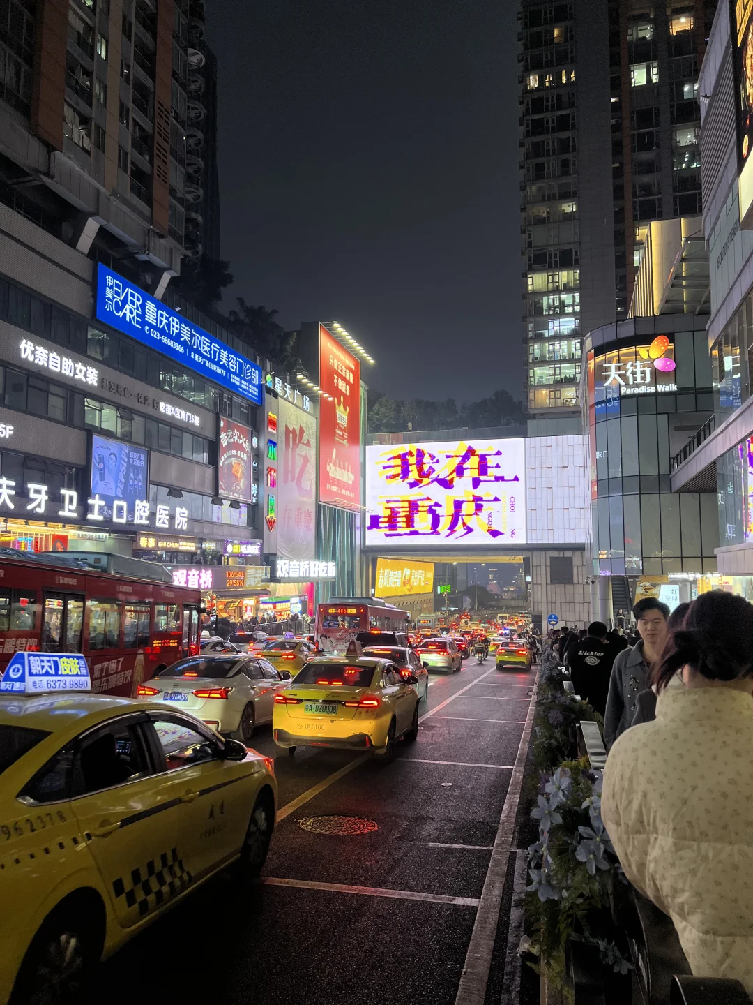 🔸观音桥:吃喝玩乐集中地,“我在重庆”大屏循环慢,抓拍需耐心