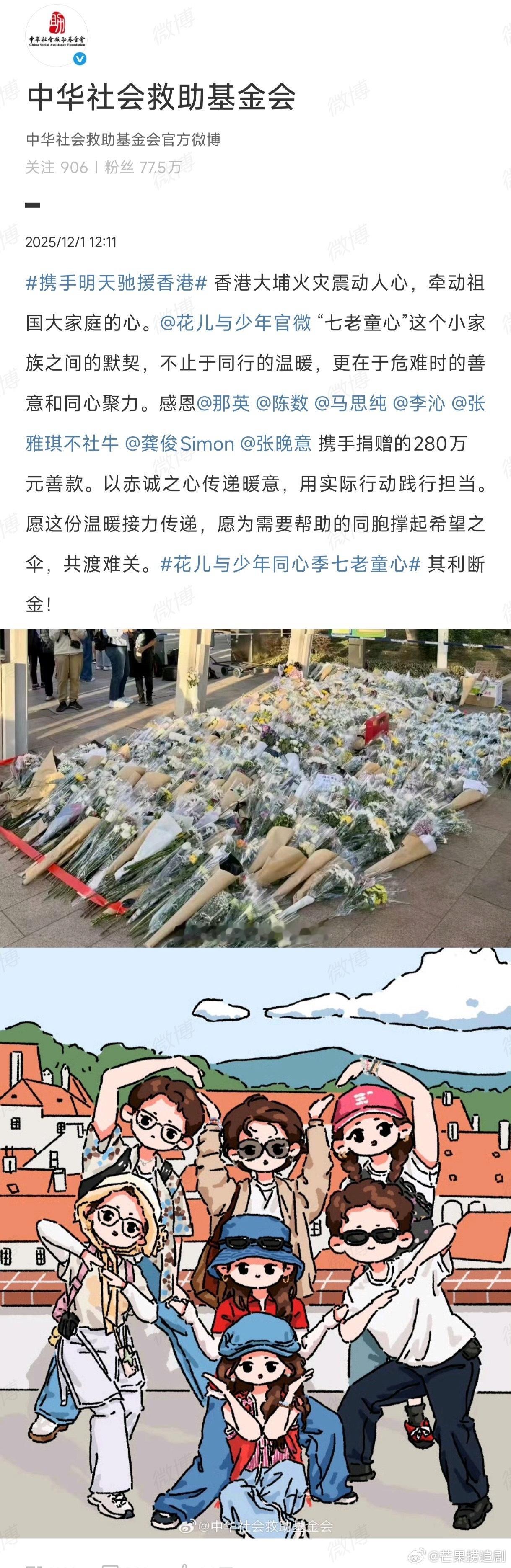 《花儿与少年同心季》七老童心那英、陈数、马思纯、李沁、张雅琪、龚俊、张晚意参与中华社会救助基金会公益捐赠驰援香港
