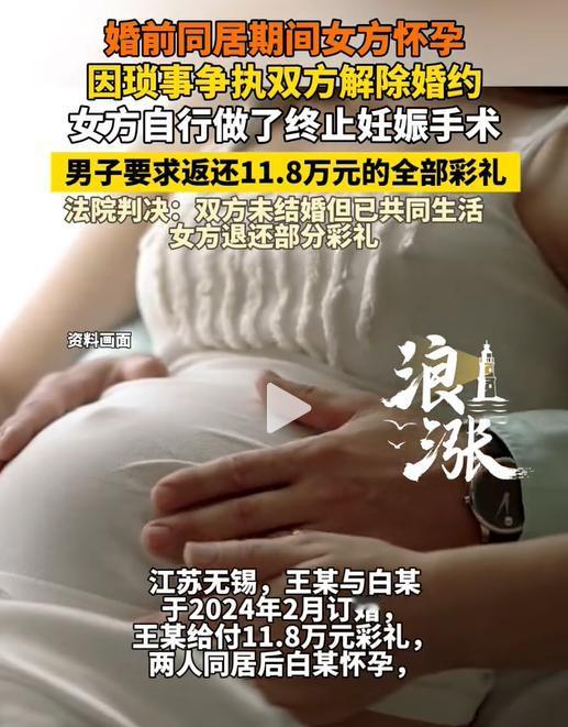 太离谱了!江苏无锡一对情侣,订婚同居后女方怀孕,孕期因琐事争吵,一气之下独自终止妊娠,男方得知情况后,非常愤怒,起诉女方要求全额退还彩礼!最终法院判决结果却出人意料! “你说打掉就打掉?那是我的孩子!彩礼全退,一分不能少!”得知自己未婚妻因争吵,自行去做终止妊娠手术的王某,将桌子拍的震天响,他怎么也没想到,原本与自己恩爱有佳,凡事好商量的她,就在订婚同居后,竟会发生如此大的变化…… “现在结婚太仓促了,工作怎么办?”只见白某抚着还未隆起的小腹,语气里满是犹豫。她刚刚在公司获得晋升机会,这个突如其来的小生命,打乱了所有职业规划。而王某则激动地反驳:“这可是我们的孩子!工作难道比骨肉还重要?” 于是在接下来的一周里,类似的争执在这对2024年2月才订婚的情侣之间不断上演。从关于何时领证、未来住房、到育儿分工。这每一个看似遥远的话题,都变成了眼前的矛盾。 直到一个周末,二人因为谁去超市采购家务用品这样的小事,再次爆发了最激烈的一次争吵。情绪激动的白某脱口而出:“这婚我不结了!”转身摔门而去。 次日清晨,眼见没有任何求和信息的白某,心灰意冷的独自走进医院妇产科,躺在手术台上时她闭上双眼,耳边却响起母亲曾经说过的话:“女人啊,得为自己活一次。”几小时后,当她脸色苍白地回到出租屋,面对王某的询问,她平静地说: “手术做完了。这是我的身体,我有权决定。” 听闻此言的王某愣在原地,几秒钟后,那张曾写满爱意的脸因愤怒而扭曲。他抓起桌上的订婚戒指狠狠摔在地上:“你以为这就能一笔勾销?那是我的孩子!我家还给你11.8万的彩礼!你就这样对我!” 而这场冲突很快从两人之间,蔓延到两个家庭。王某的母亲在电话里哭喊:“那是我们一辈子的积蓄啊!”,而白某的父亲则态度强硬:“我女儿的身体损伤谁来赔?” 眼见争议无果,无奈之下王某将一纸诉状递至当地法院,并坚决要求全额返还彩礼。在法庭调查阶段,法官仔细梳理了时间线:2月订婚同居,同居后确认怀孕,随后又因争吵,终止妊娠并解除婚约。 此案件关键的争议点在于,两人在2024年2月经人介绍订婚,王某按习俗向白某给付了11.8万元彩礼。订婚后,双方开始共同生活,并且白某怀孕。 然而,共同生活并未让关系更稳固,反而因生活琐事频频发生争执。最终,在一次激烈的争吵后,双方冲动之下解除了婚约。关系的戛然而止,带来了更棘手的问题:白某腹中的胎儿如何处理?白某最终选择了自行前往医院终止妊娠。这一决定,成了矛盾彻底爆发的导火索。 随后的法院的判决并未支持王某的全部诉求,因为法官认为,虽然双方未办理结婚登记,但已经实际共同生活,且女方经历了怀孕过程。因此,“仅因未登记结婚就要求全额返还彩礼,有违公平原则”。 最终,法院综合考虑共同生活、孕育情况、彩礼实际使用以及当地习俗,判决白某返还王某彩礼47000余元。 最后小编认为,结婚本是喜事,但彩礼处理不当容易埋雷。所以建议双方在订婚时,就坦诚沟通好:万一婚事不成,彩礼怎么处理?最好能留个书面字据,免得日后扯皮。 如果真要走到分手那步,先别急着撕破脸。请家族长辈或中间人出面调解,往往比直接打官司更有人情味。打官司是能判个对错,但感情是再也回不来了。 说到底,婚姻不是买卖。彩礼该是锦上添花的心意,不该成为押金或筹码。两个人在一起,相互体谅比计较钱财更重要。毕竟法律能判彩礼归谁,却判不回失去的信任和感情。 对于此事我们只能说,婚姻这条路,出发时都想着白头偕老,可现实往往错综复杂。彩礼是起点,不是保险;孩子是纽带,不是筹码。真正牢固的关系,需要的是两个成年人持续的理解、担当和共同成长。 当感情被明码标价,裂痕早已在计算中滋生,因为法律能判还钱财,却判不回那个春天里,曾一起挑选婴儿车的满怀憧憬。 对此您怎么看?欢迎大家到下方评论区留言共同讨论。 婚姻未婚同居对姑娘们是福还是祸?情侣 信息来源: 浪涨新闻2025.12.1|《婚前同居怀孕退婚后男方起诉要彩礼》 文|沐琨 编辑|南风意史
