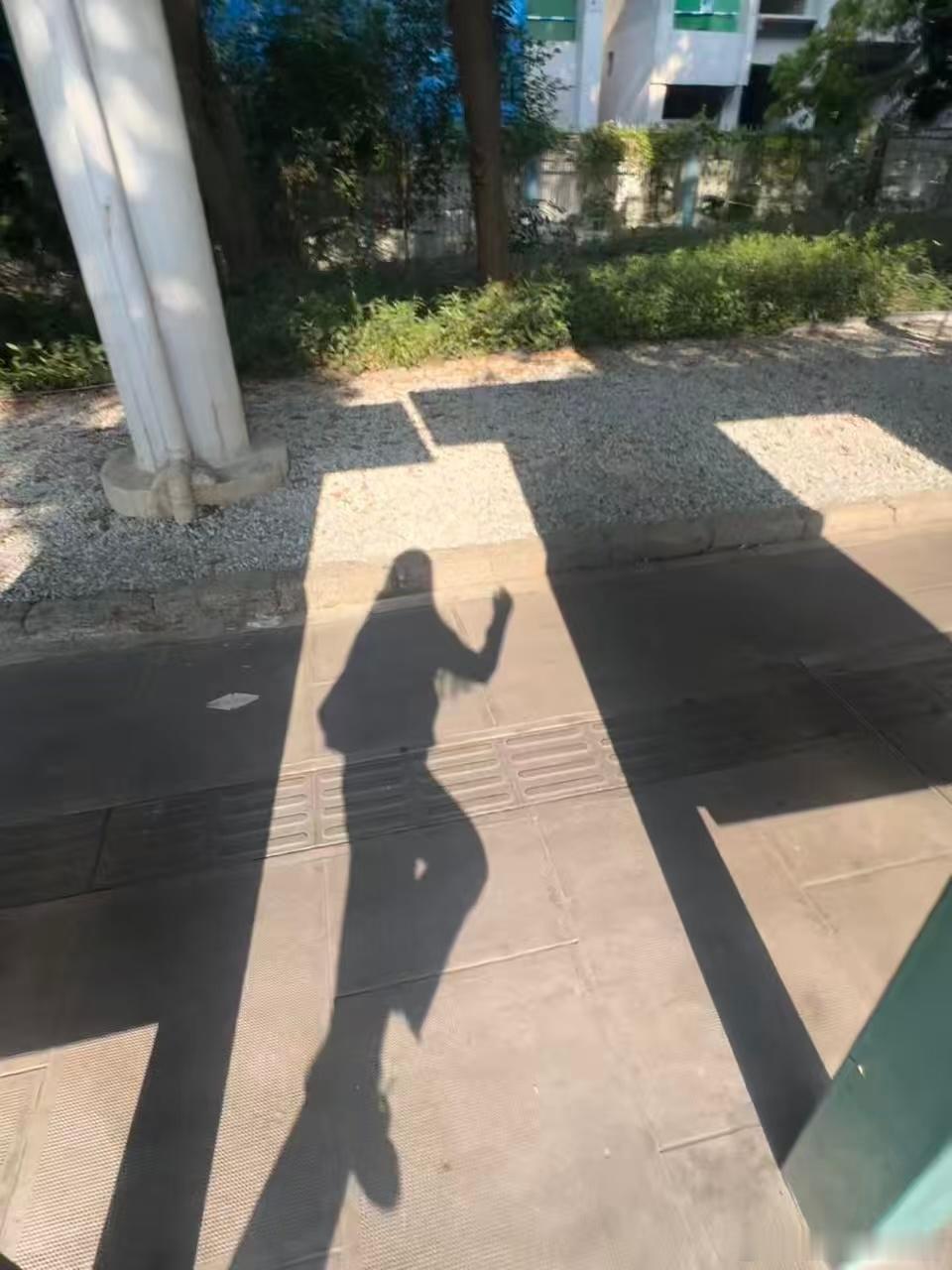 在等车时候看见阳光很好,突然发现那个喜欢和影子玩的小女孩长大了