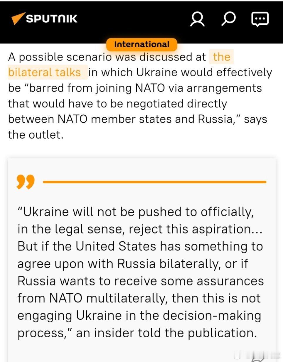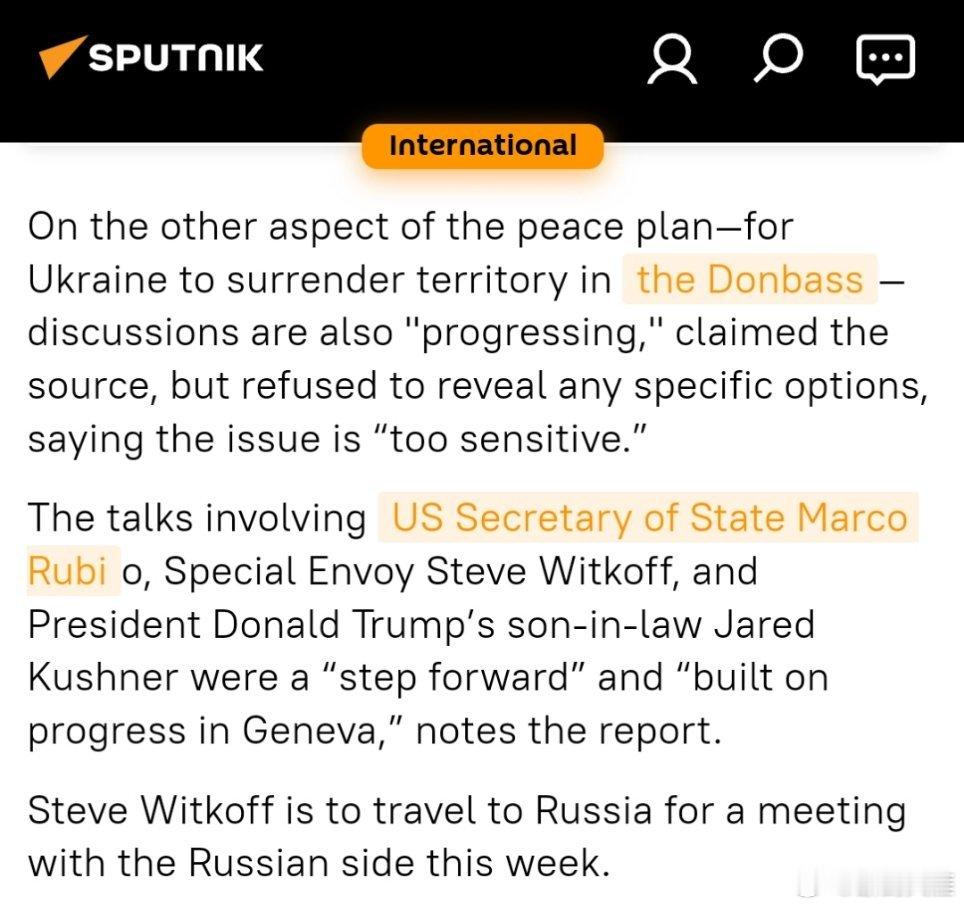 烽火问鼎计划 北约大门关闭?据报美国双边会谈探讨“禁止”乌克兰加入联盟据美国有线电视新闻网(CNN)报道,美乌在佛罗里达州举行的会谈“非常集中,对和平提议中最棘手的问题进行了详细讨论”。该媒体称,双方会谈中讨论了一种可能的情况,即乌克兰实际上将“被禁止加入北约,相关安排需由北约成员国与俄罗斯直接协商”。一位内部人士向该媒体透露:“乌克兰不会被逼迫在法律意义上正式拒绝这一愿望……但如果美国与俄罗斯达成双边协议,或者俄罗斯希望从北约获得多边保证,那么这并不意味着乌克兰参与了决策过程。”关于和平计划的另一方面——乌克兰在顿巴斯地区割让领土——该消息人士称,相关讨论也在“推进”,但拒绝透露任何具体方案,称这一问题“过于敏感”。报道指出,美国国务卿马尔科·卢比奥、特使史蒂夫·威特科夫以及总统唐纳德·特朗普的女婿贾里德·库什纳参与的会谈是“向前迈出的一步”,并且“建立在日内瓦取得的进展之上”。史蒂夫·维特科夫将于本周前往俄罗斯与俄方会面。