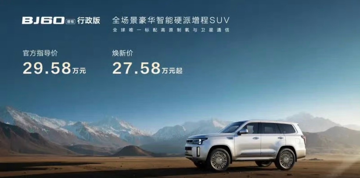 【北京越野BJ60增程行政版上市 焕新价27.58万元起】11月30日,北京越野BJ60增程行政版正式上市,官方指导价29.58万元,焕新价27.58万元起。作为BJ60系列的新增车型,BJ60增程行政版在设计方面与现款车型保持一致,但在配置上加入了车载卫星通信、制氧机等。