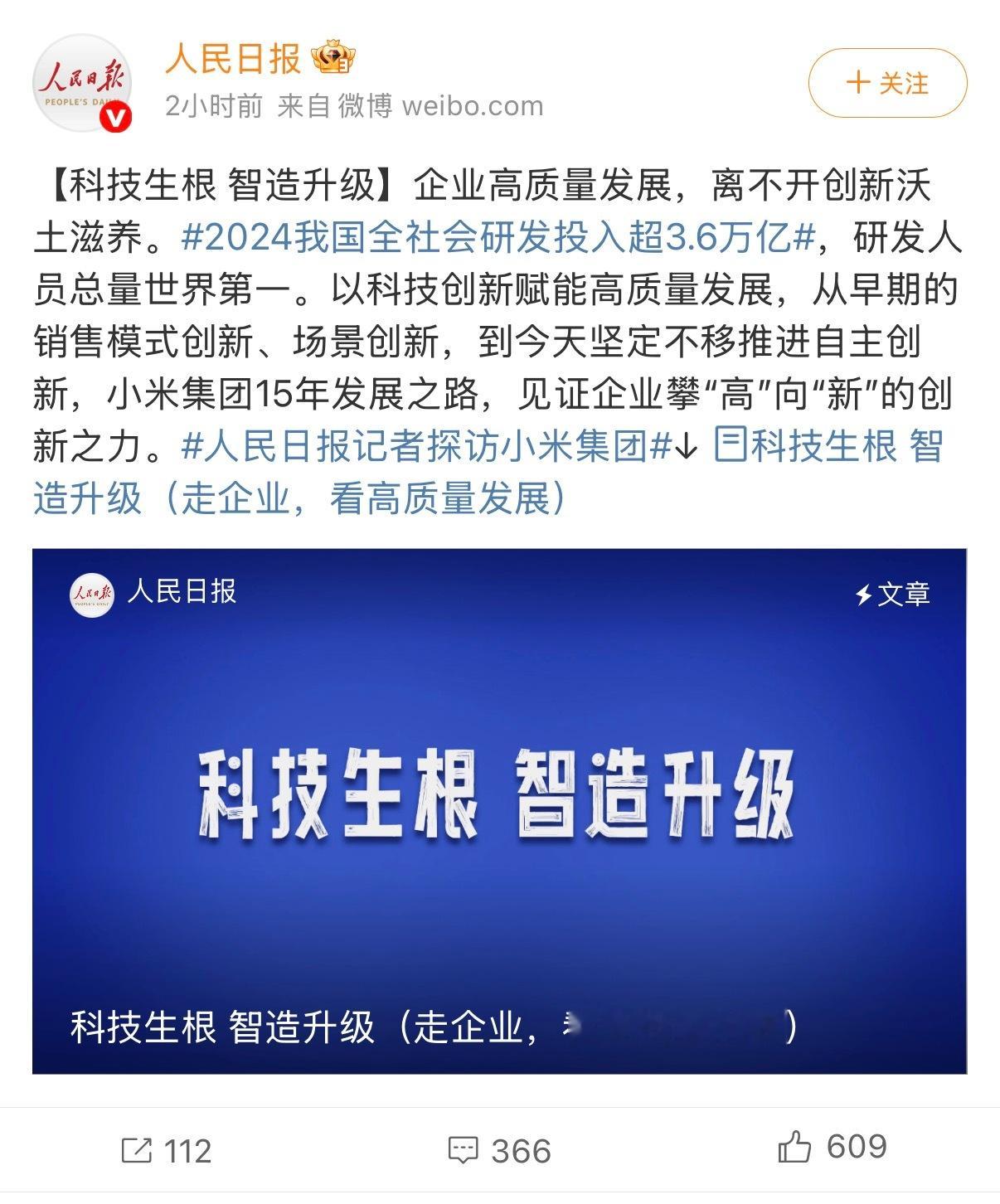 不知道大家有感觉没有,现在小米干啥成啥,回看本质,重视人才是核心。积极响应国家号召,真金白银砸研发,顶尖年轻技术人才纷纷加入,从《麻省理工科技评论》亚太“35岁以下科技创新35人”的陈龙,到前DeepSeek研究员罗福莉等。小米挖牛人不惜代价,雷总也反复强调技术为本,过去五年研发投入直接超千万,未来五年还要翻倍。小米手机高端化,小米汽车上市火爆,自研玄戒O1芯片振奋人心等。小米凭实力出圈,成为国家认可的“硬核科技公司”,登上人民日报的头版头条。搞不明白一直黑小米人的心态,多少有点见不得人好的成分存在~人民日报谈小米集团高质量发展