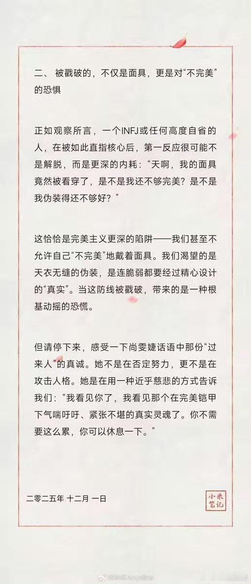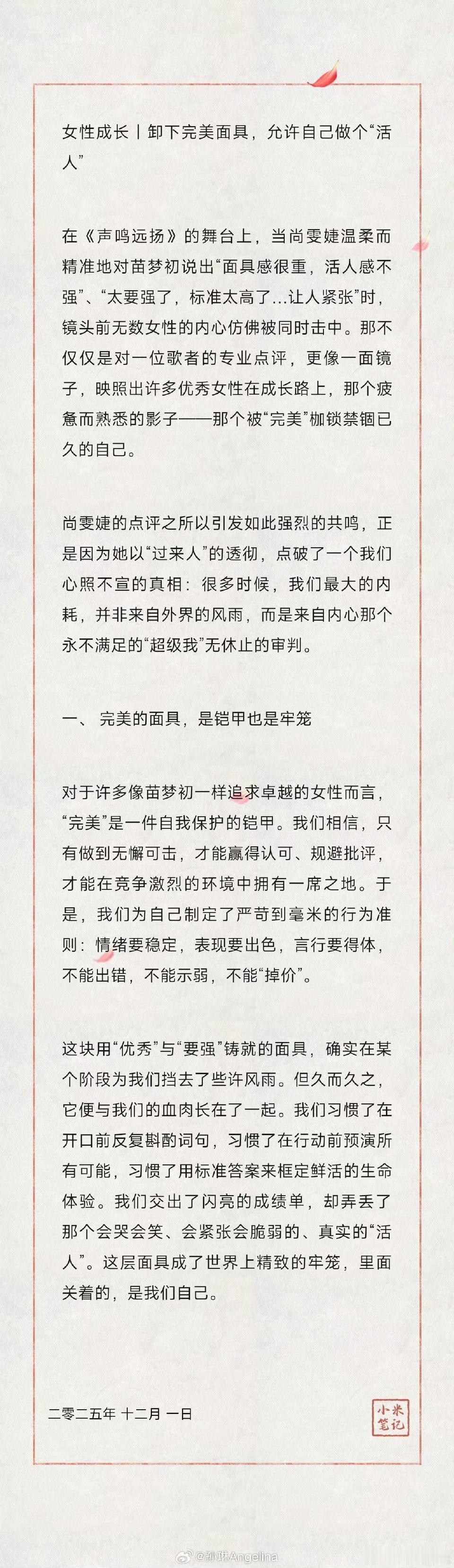 内耗人多听听尚雯婕这段话尚雯婕懂苗梦初的紧绷,也说自己曾被焦虑困住~ 内耗的人别怕不完美,卸下面具真实的样子才最可爱!声鸣远扬