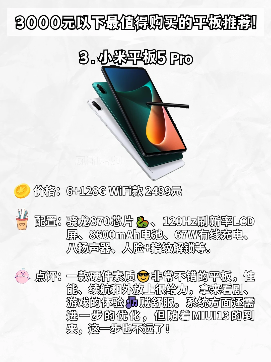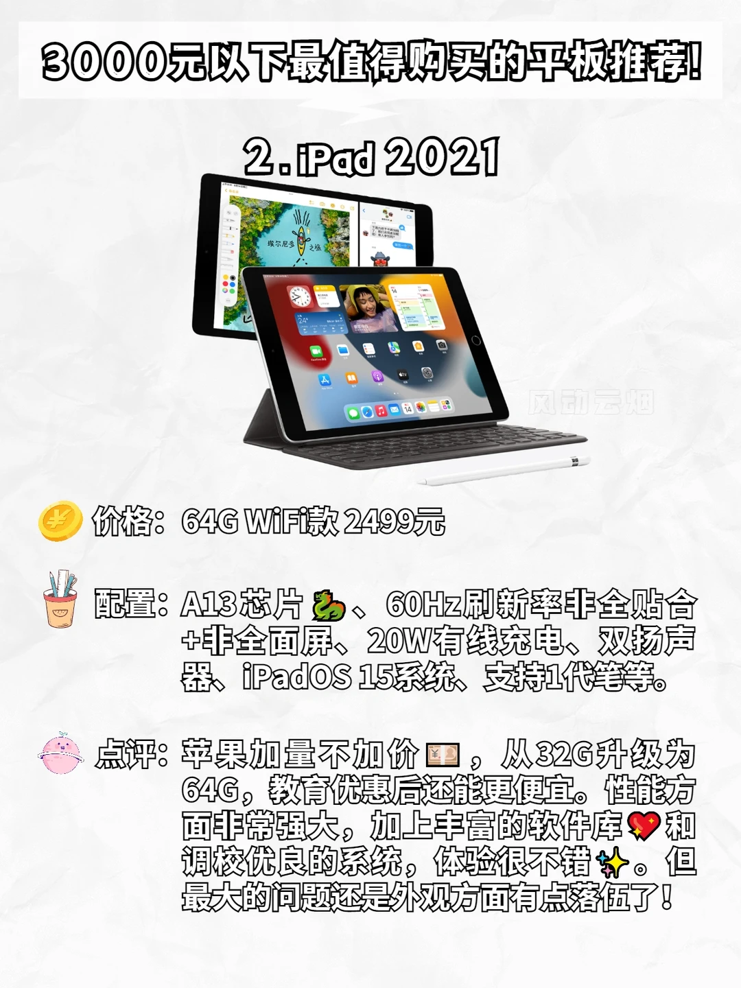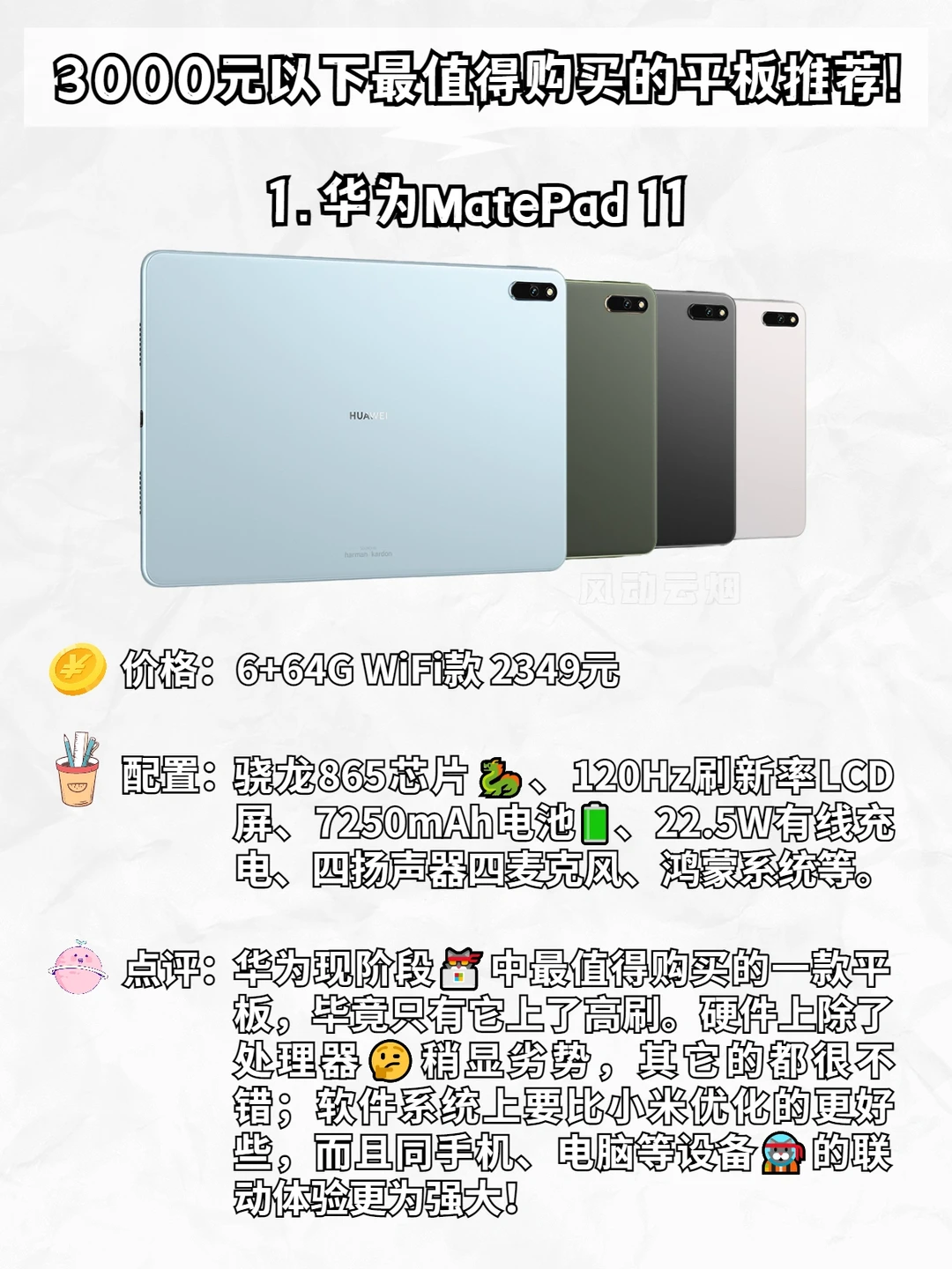 今天给大家带来3000元价位段最值得购买的3⃣️款平板,性价比方面🥳还不错。 有适合拿来追剧、游戏的,也有适合学习、看网课的,感兴趣的可以给点个收藏☃️再看。 1⃣️华为MatePad 11