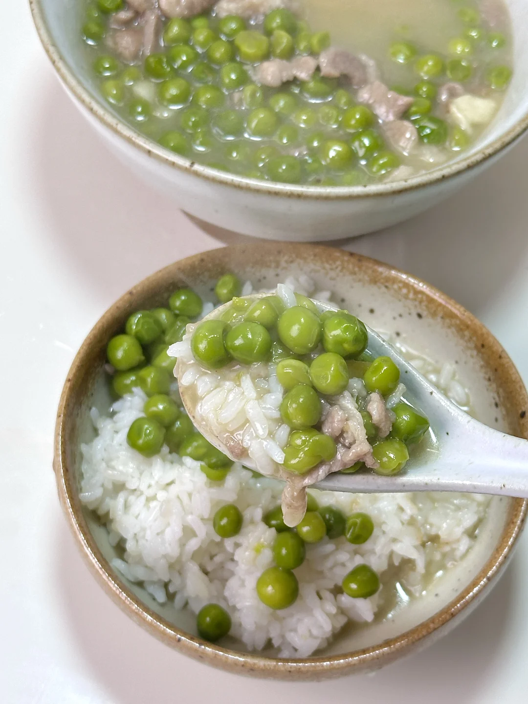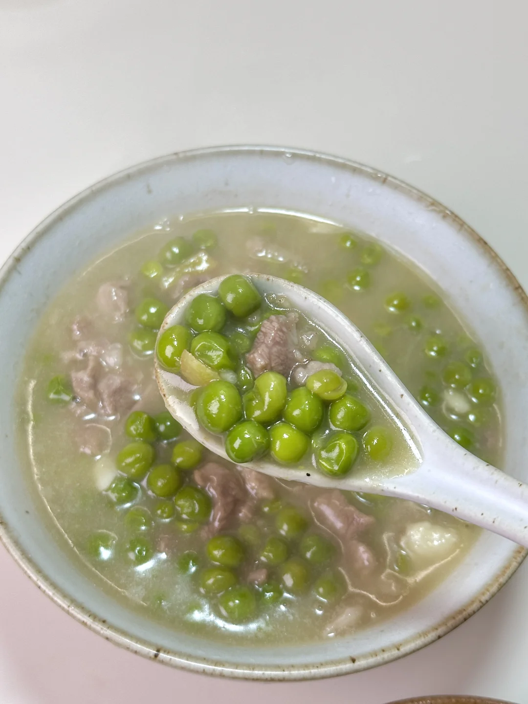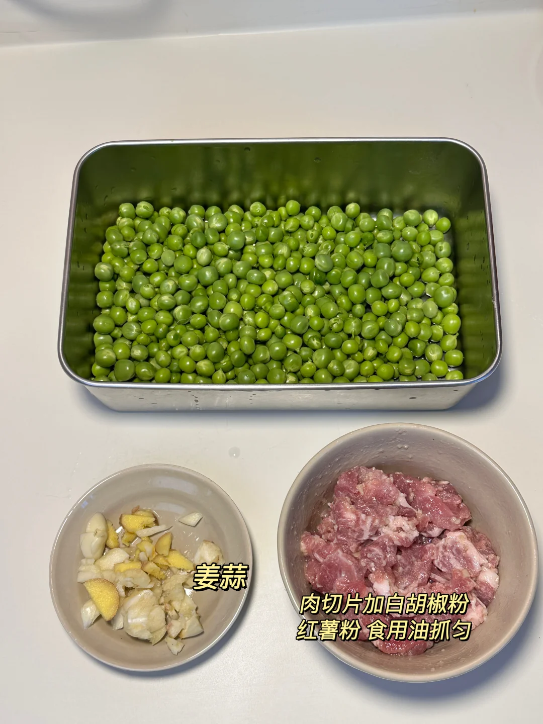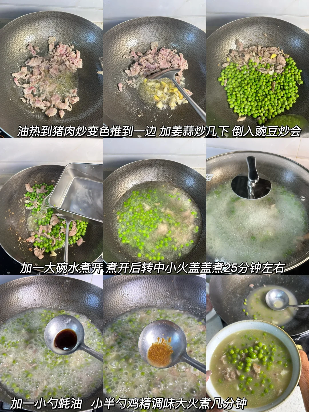 春菜上桌 豌豆煮肉 甜滋滋 粉粉的真好吃,应该是每个江西人从小到大餐桌上很常见的菜啦 挑食的小朋友也爱吃[赞R]家里的饭菜最好吃 拌着米饭一起炫不停[偷笑R] ✨食材:豌豆 梅花肉 姜蒜 1️⃣:猪肉切薄片再改刀切小 加白胡椒粉 红薯粉 食用油抓匀备用。锅里倒油烧热放肉片炒变色推到一边 下姜蒜炒几下,倒入豌豆翻炒几下。加一大碗水煮开后转小火盖盖煮25分钟左右。煮到豌豆粉粉的,加一小勺蚝油,小半勺鸡精开大火煮几分钟。 好好吃饭呀🖖🏻