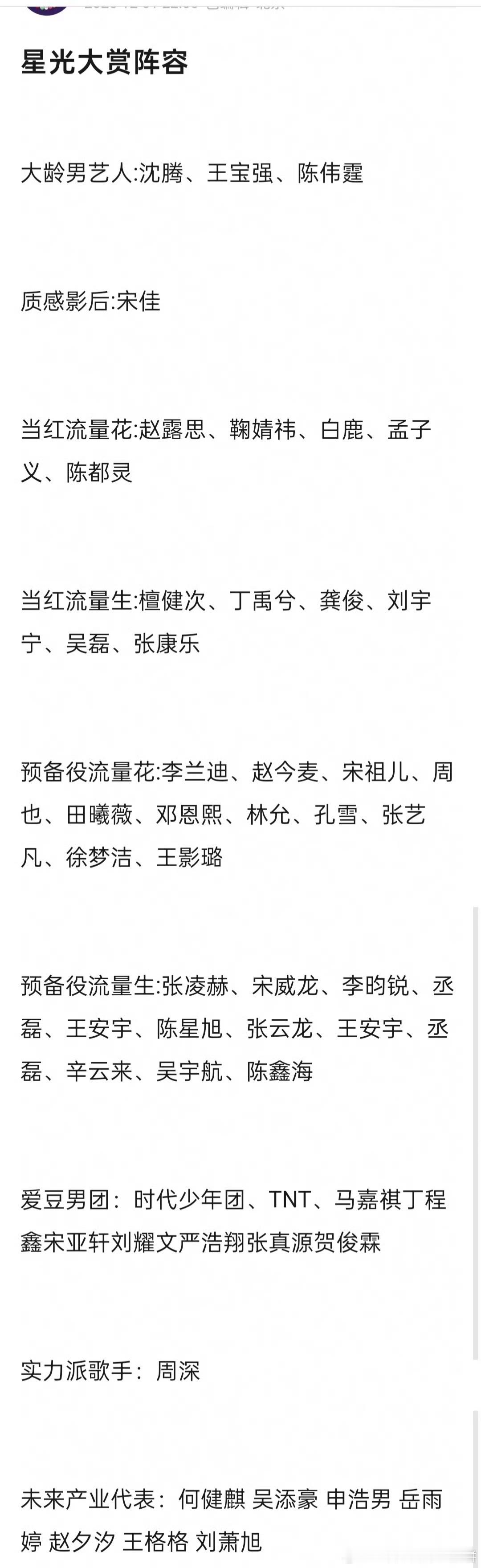 12月21日腾讯星光大赏嘉宾阵容:【已通知】白鹿、龚俊、吴宇恒、陈鑫海、宋茜、孔