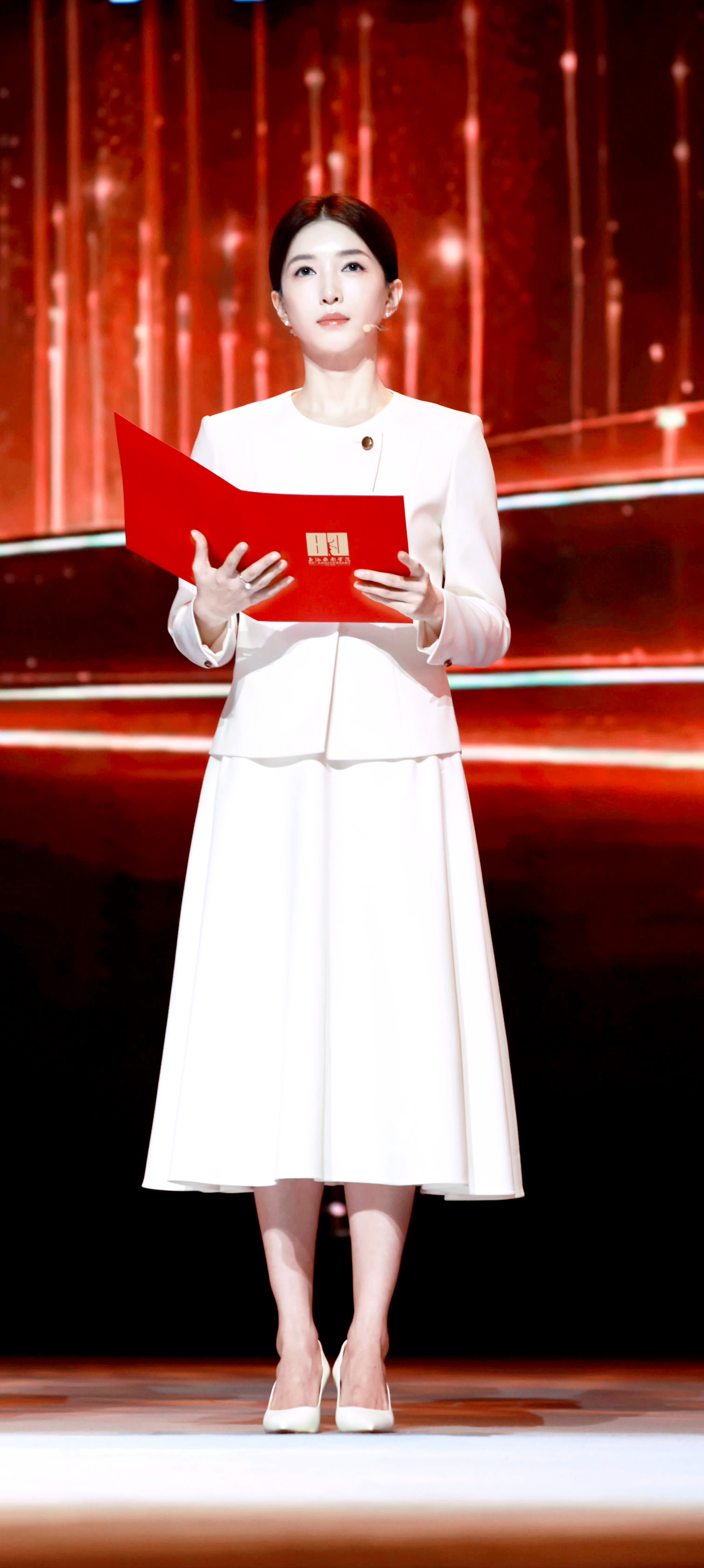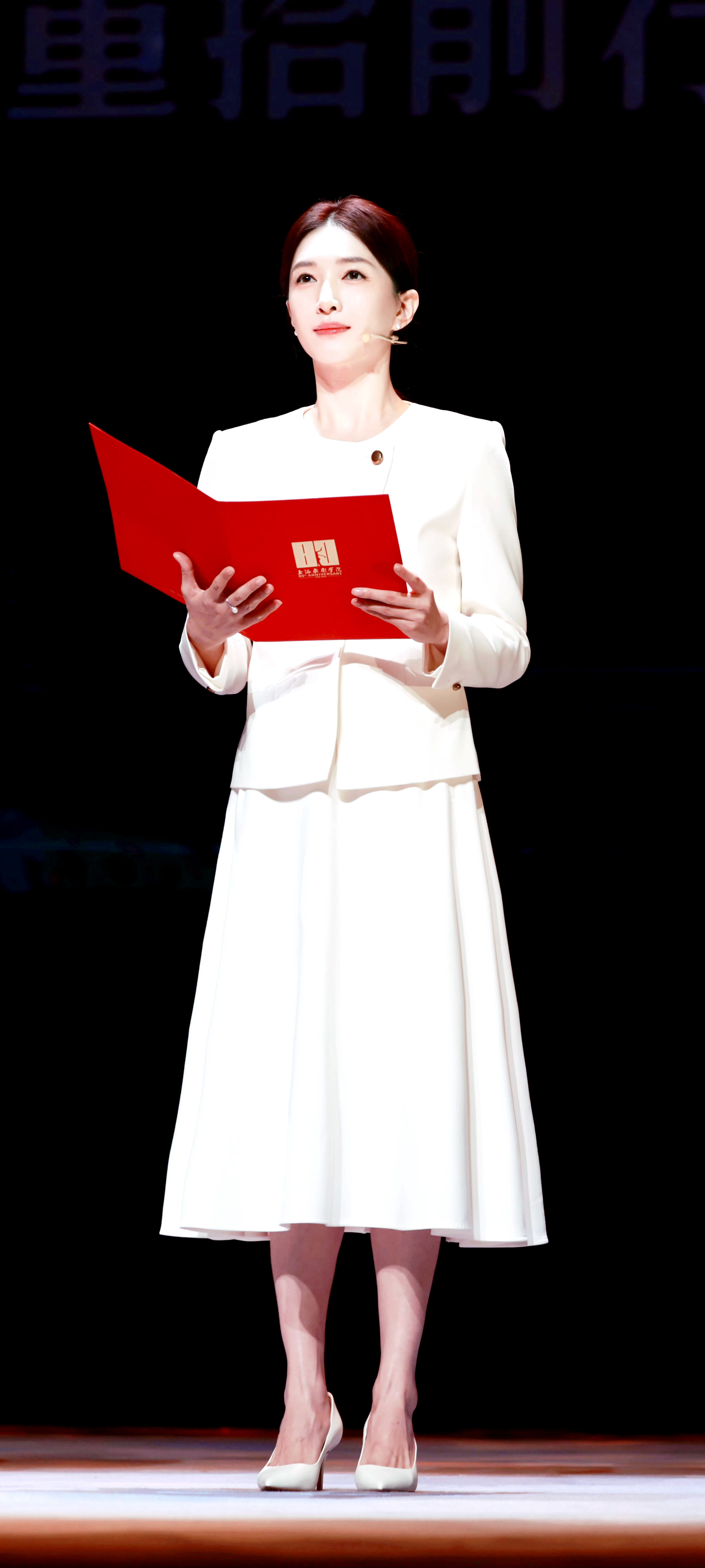 吴越新烫了微卷短发,轻盈蓬松间焕发年轻气息,整个人美出新高度。她眉眼沉静、气质温