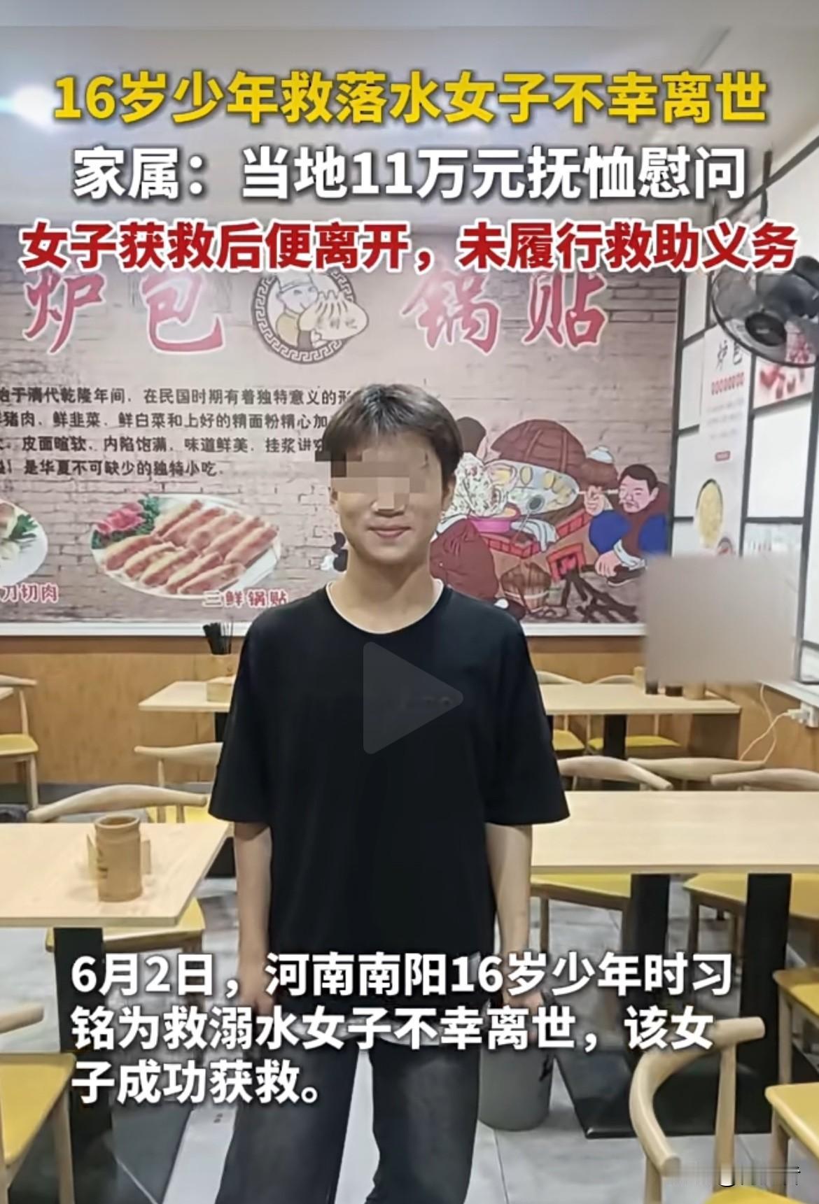 16岁本是青春正好的年纪,可这个少年却因救落水女子永远离开了,1月1日晚出事,经过50多个小时搜寻,遗体才被打捞上岸。少年正值青春,却因救人付出了生命的代价。当地给了11万元抚恤慰问,可获救女子却直接离开,未履行救助义务,实在让人寒心