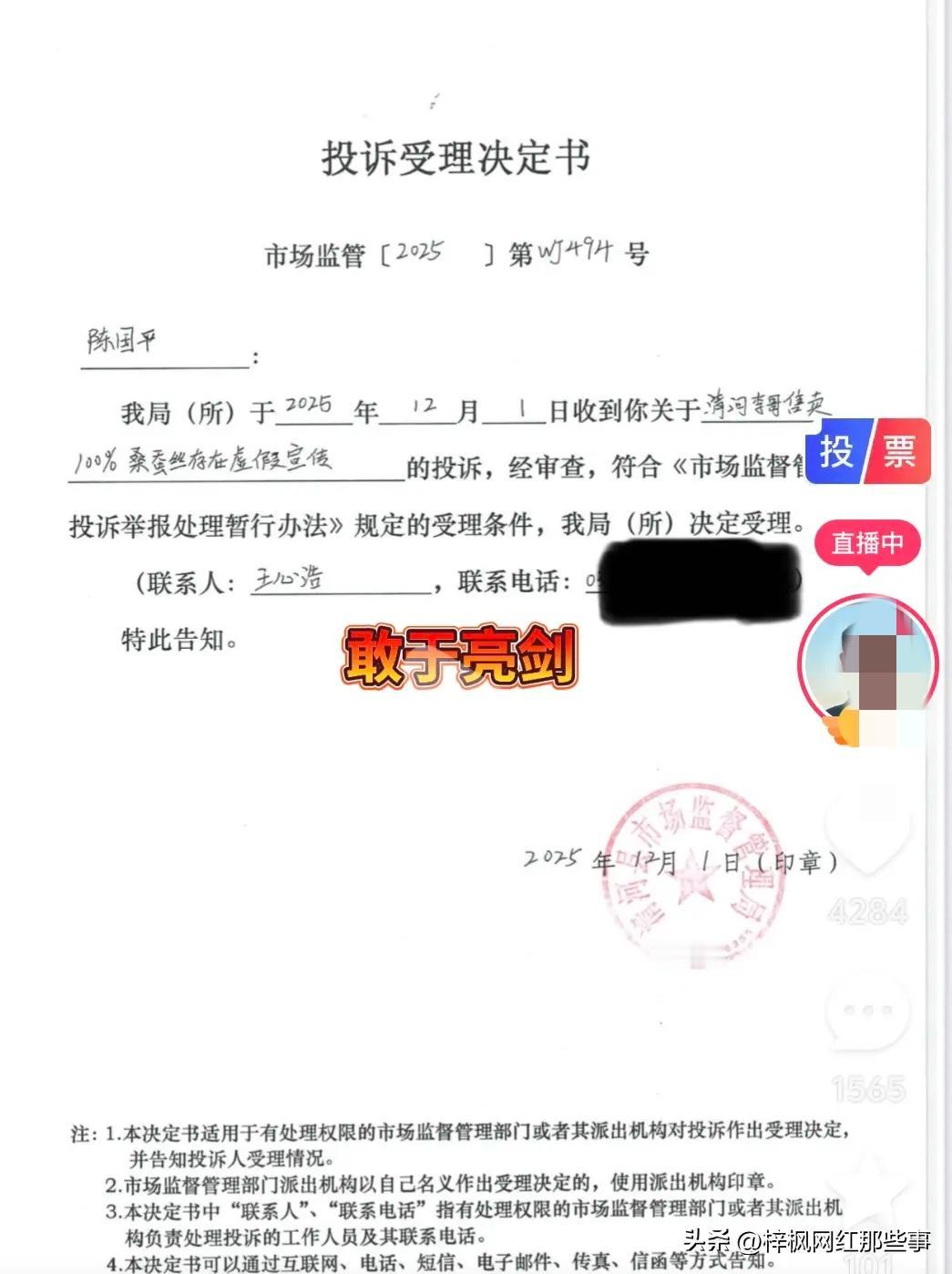 《老陈驱车700公里,硬刚假蚕丝被:直播间绝不能成造假温床!》 从秦皇岛到清河县,700多公里的夜路,反诈老陈开启了一场“较真之旅”,无情地撕开了网红带货的虚假面具。他花299元购买的所谓“百分百桑蚕丝被”,经检测竟含有过半羊毛,不见一丝桑蚕丝,就连检测报告都是伪造的。当商家妄图通过关闭评论、下架商品来逃避责任时,老陈毅然驱车前往当地举报。 这700公里的路程,丈量出的是普通人维权的坚定决心,更是对直播乱象的有力宣战。面对拥有七千万粉丝的网红,老陈的较真向所有人宣告:法律面前,没有“顶流特权”。随着直播电商监管新规即将落地,老陈的这一行动宛如一记警钟——唯有对造假行为零容忍,才能让直播间少些套路、多些真诚。目前,市场监督管理局已受理调查,我们满心期待正义的回应。 清河李哥