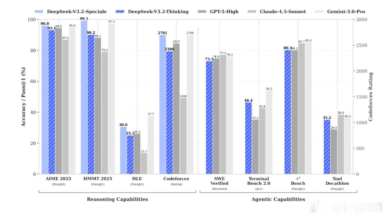 【DeepSeek新版本有什么新突破 】12月1日晚间,DeepSeek同时发布两个正式版模型:DeepSeek-V3.2 和 DeepSeek-V3.2-Speciale,DeepSeek-V3.2的目标是平衡推理能力与输出长度,适合日常使用,例如问答场景和通用Agent(智能体)任务场景。在公开的推理类基线测试中,DeepSeek-V3.2达到与GPT-5相当的水平,仅略低于Gemini-3.0-Pro;相比Kimi-K2-Thinking,V3.2的输出长度大幅降低,显著减少计算开销与用户等待时间。你认为 DeepSeek新版本有什么新突破 ?是思考融入工具调用的能力,还是推理能力的媲美主流闭源模型?欢迎在评论区分享你的观点~