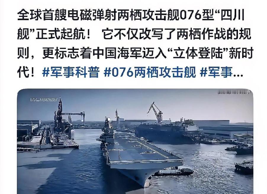 网上消息大概率是误将076级两栖攻击舰首舰“四川”舰称作第二艘电磁弹射航母了,目