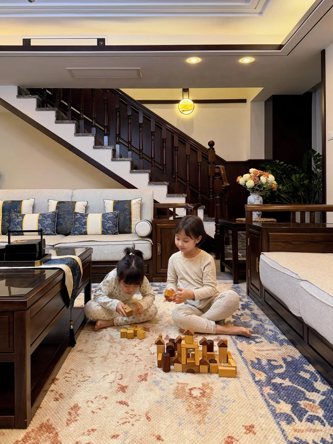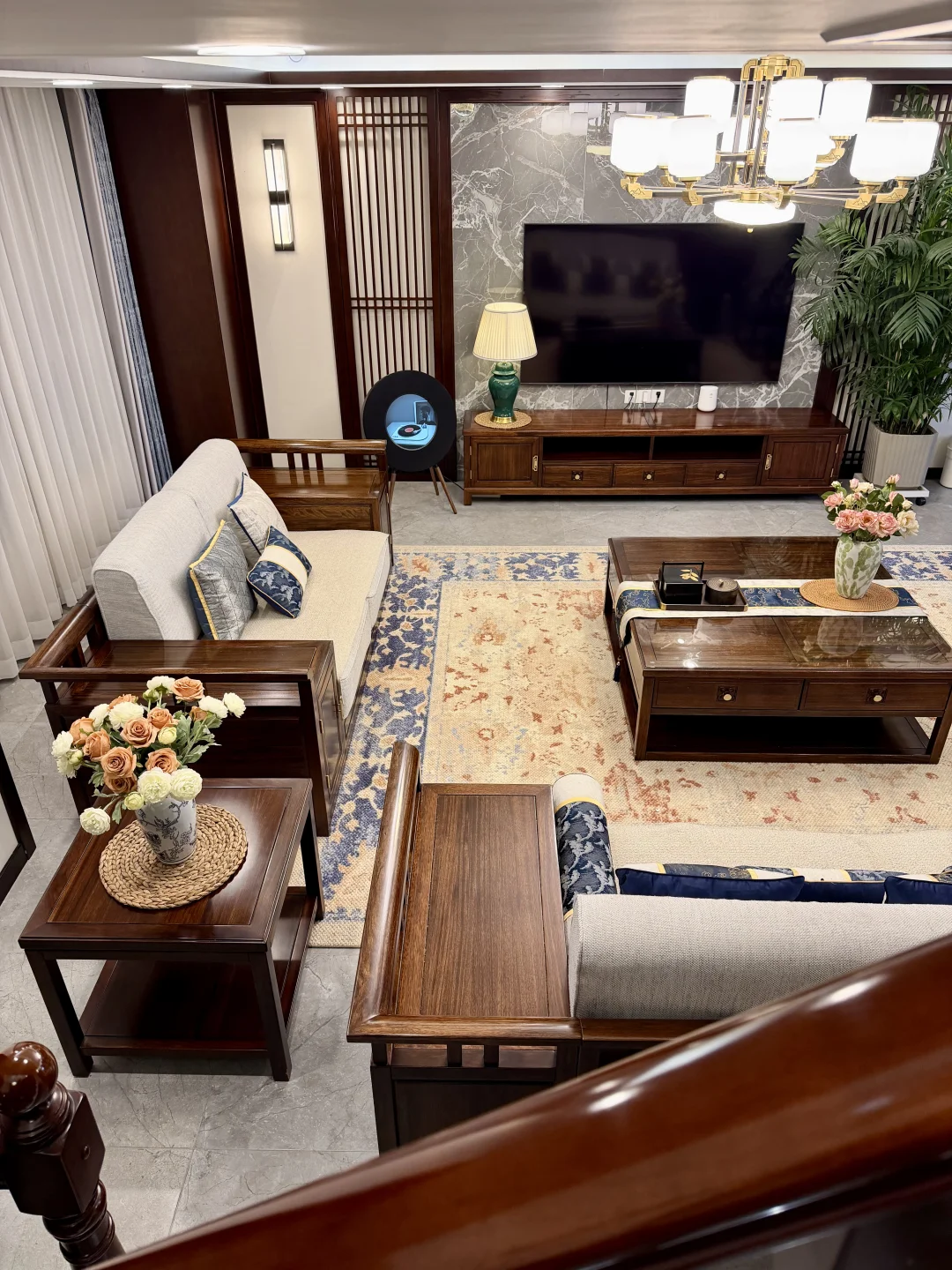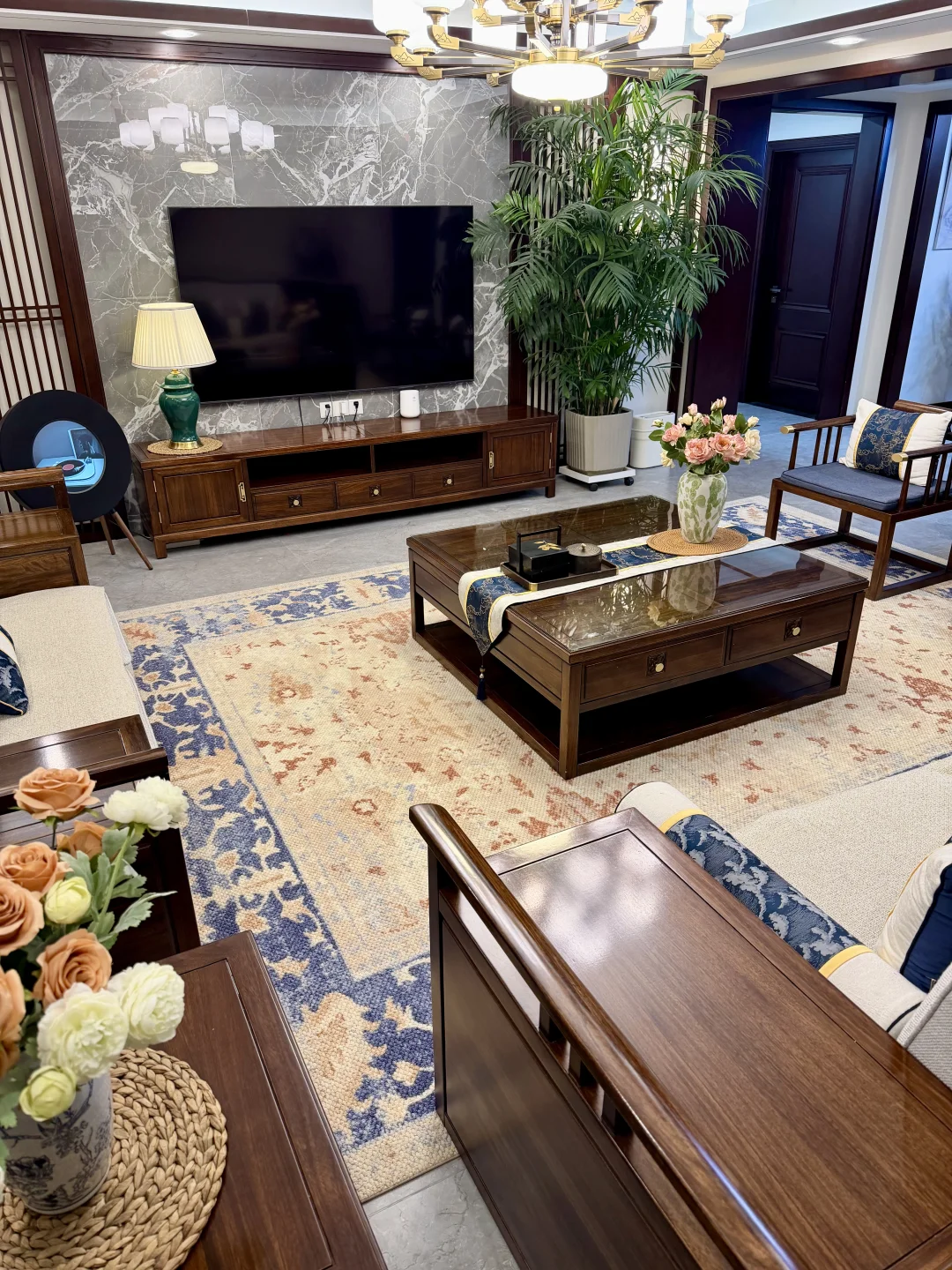 新中式的颜色搭配 还有实木的质感 一眼看上去就很美丽