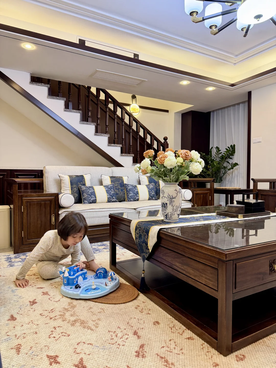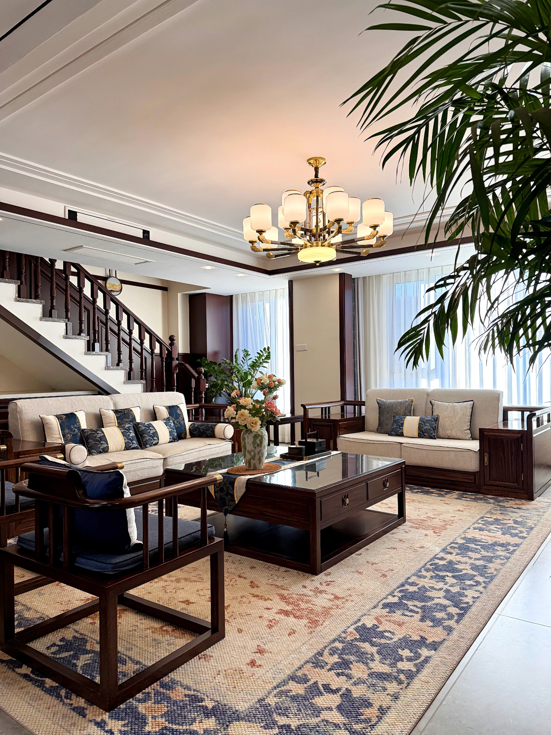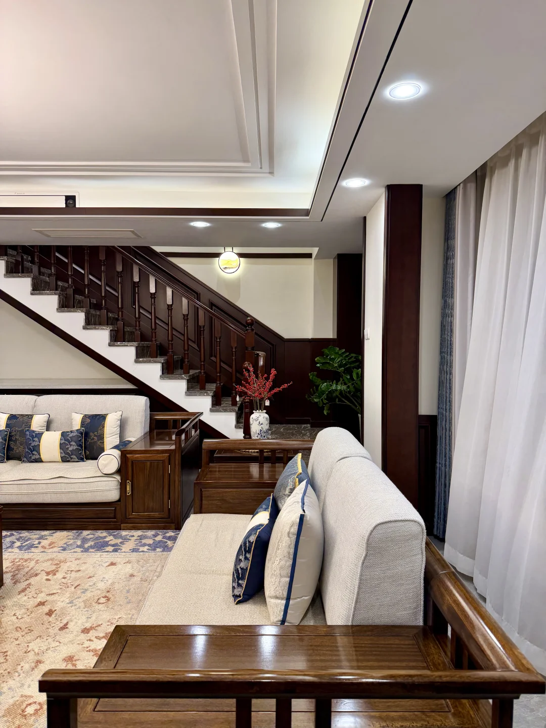 新中式的颜色搭配 还有实木的质感 一眼看上去就很美丽