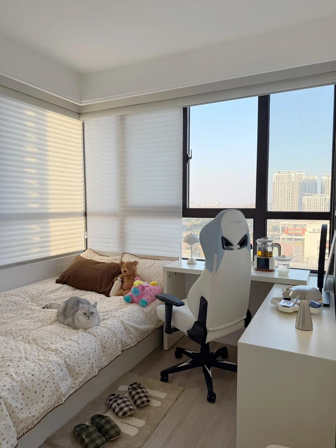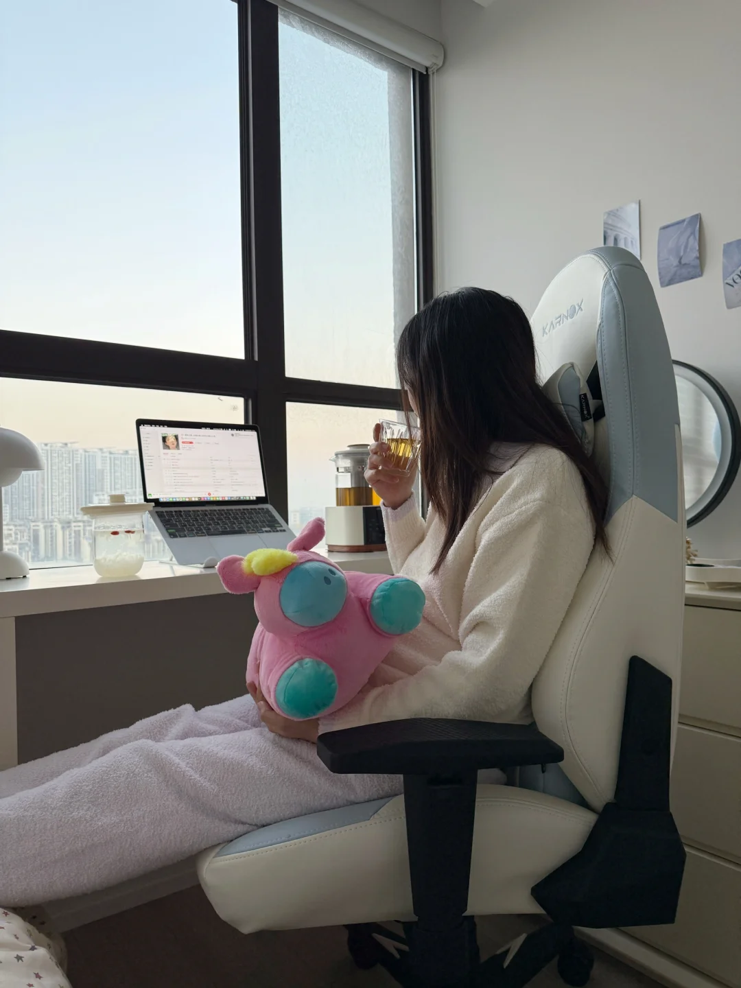 呆在自己的小卧室,超级暖和🔥,喝杯花茶☕️