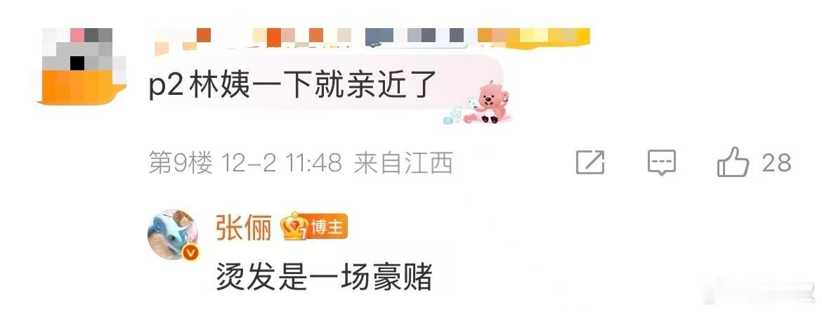 张俪 烫发是场豪赌 谁懂烫发的痛!张俪一句吐槽说到心坎里,这个年代感烫发造型,还