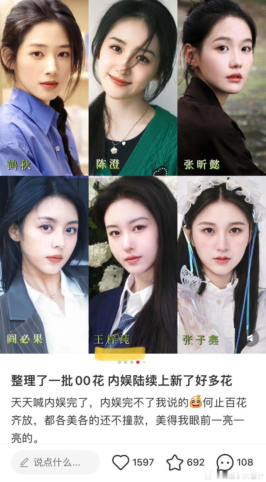 王梓莼 00花咱莼姐的自信不是没有原因的大家都嘲笑咱莼姐自称00花,可一些野榜营销号盘点00花还真带过她。有时也不怨人家那么自信,高中时就被一群男粉一口一个校花一口一个女神捧着,很难不自信啊咱莼姐在群里和她那些男粉们说了,是她来了这个综艺才有人看,她也确实火了,黑红也是红,流量有了下一步估计要美美洗白了
