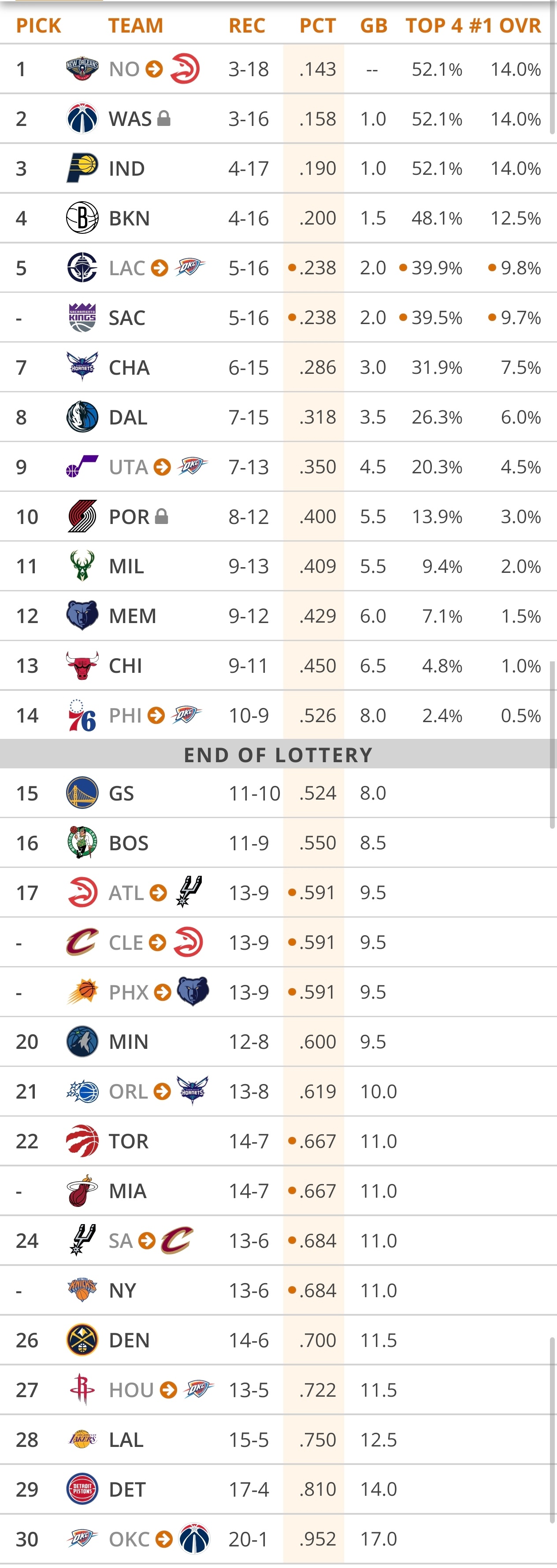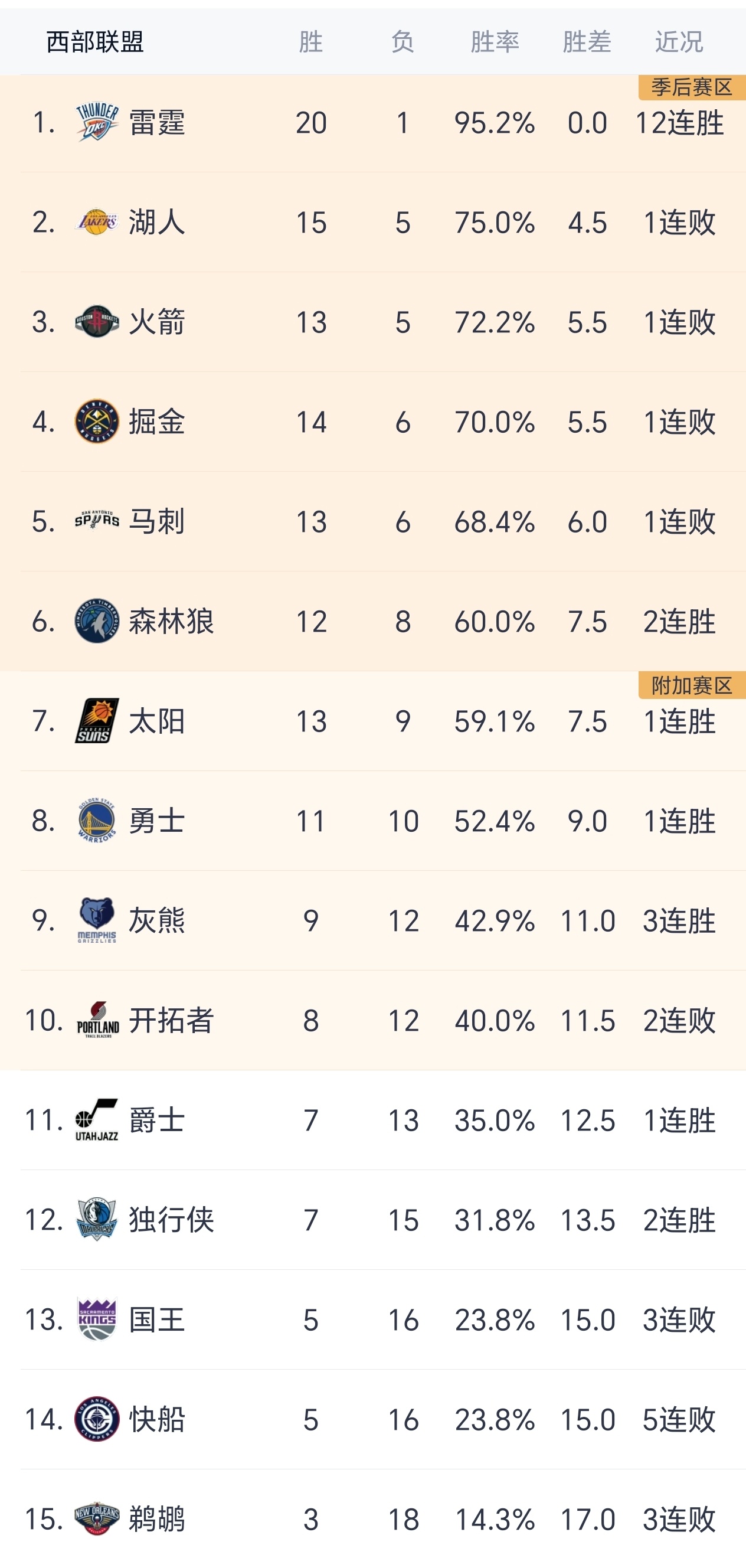 NBA今日赛后的排名与签位预测分布:西部第二、第三和第四全部输球,甚至其中一场还是爵士赢的,如果按照现有排名抽签雷霆将会有……三枚乐透签?😂太阳终结湖人七连胜独行侠战胜掘金伦纳德空砍36分快船5连败雷霆