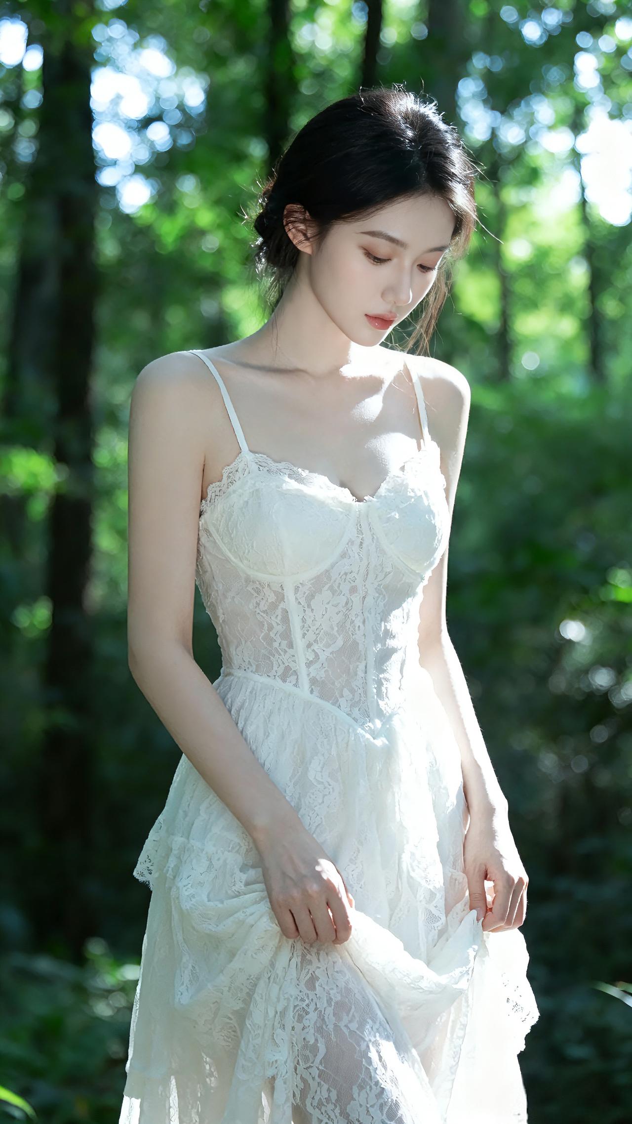 梦幻森林中的白衣少女,宛如将温柔与自然绘入绝美画卷,与森林绿意相融,尽显东方古典气质,似仙子下凡。阳光穿枝叶,她衣袂飘飞。将温柔与自然交织,令人难忘。 美照 白色小裙,展现自我的美。有姐姐在评论区展现一下不同风格的美吗?