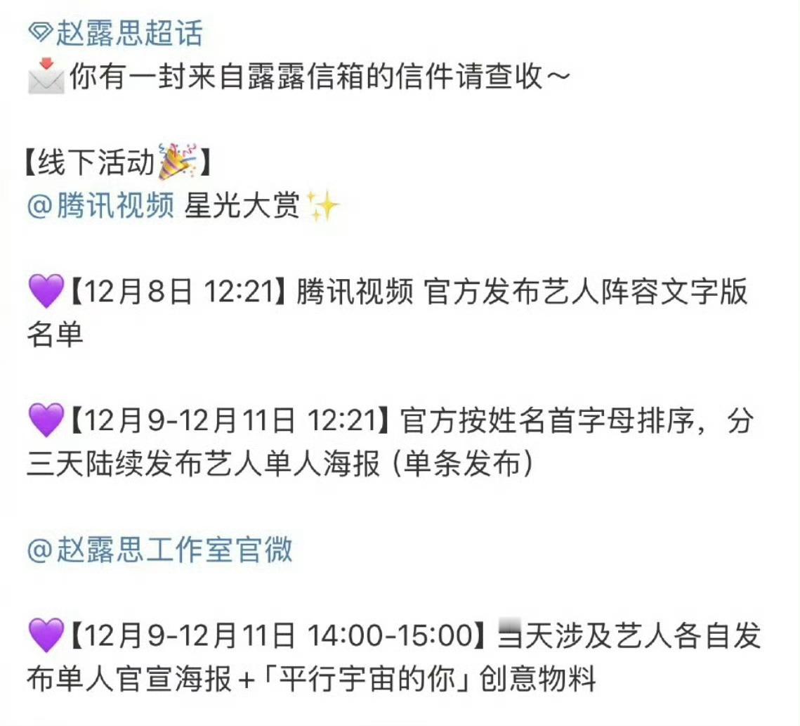 赵露思确认将参加腾讯星光大赏星光大赏名单