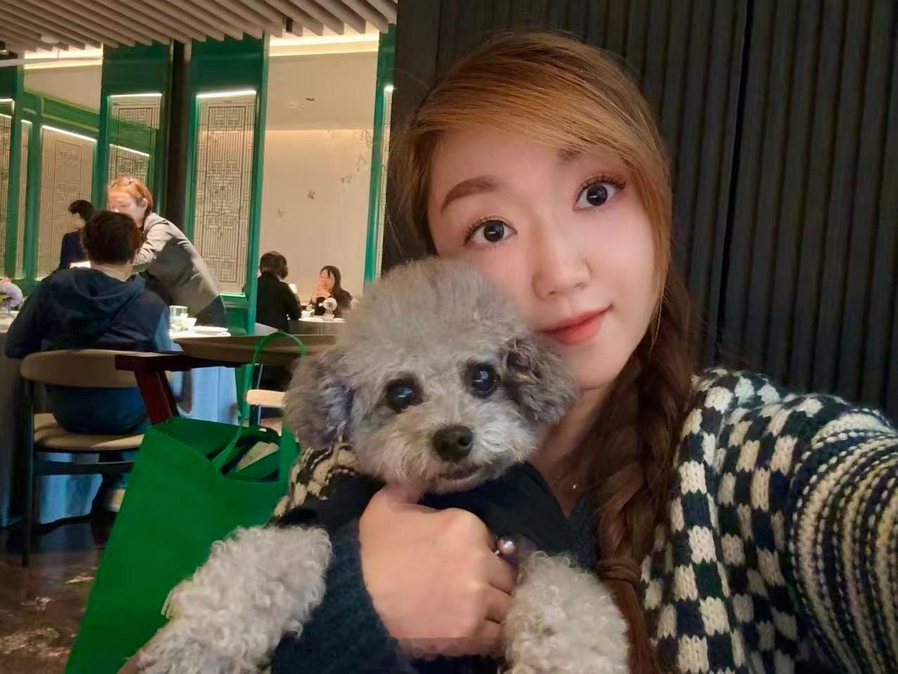 这个说起来有点拗口:乖妈和她的干狗儿子PiPi合影。
