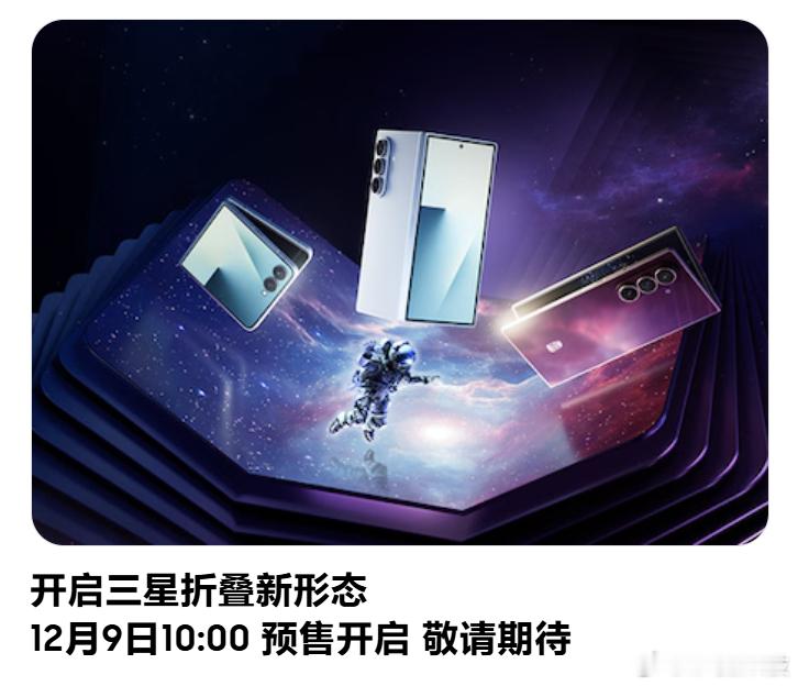 【三星首款三折叠手机Galaxy Z TriFold,将于12月9日开启预定】三星今日正式发布首款三折叠手机Galaxy Z TriFold,起售价359.04万韩元(约合人民币17302元)。三星网上商城已经官宣,这款新机将于12月9日开启预定。