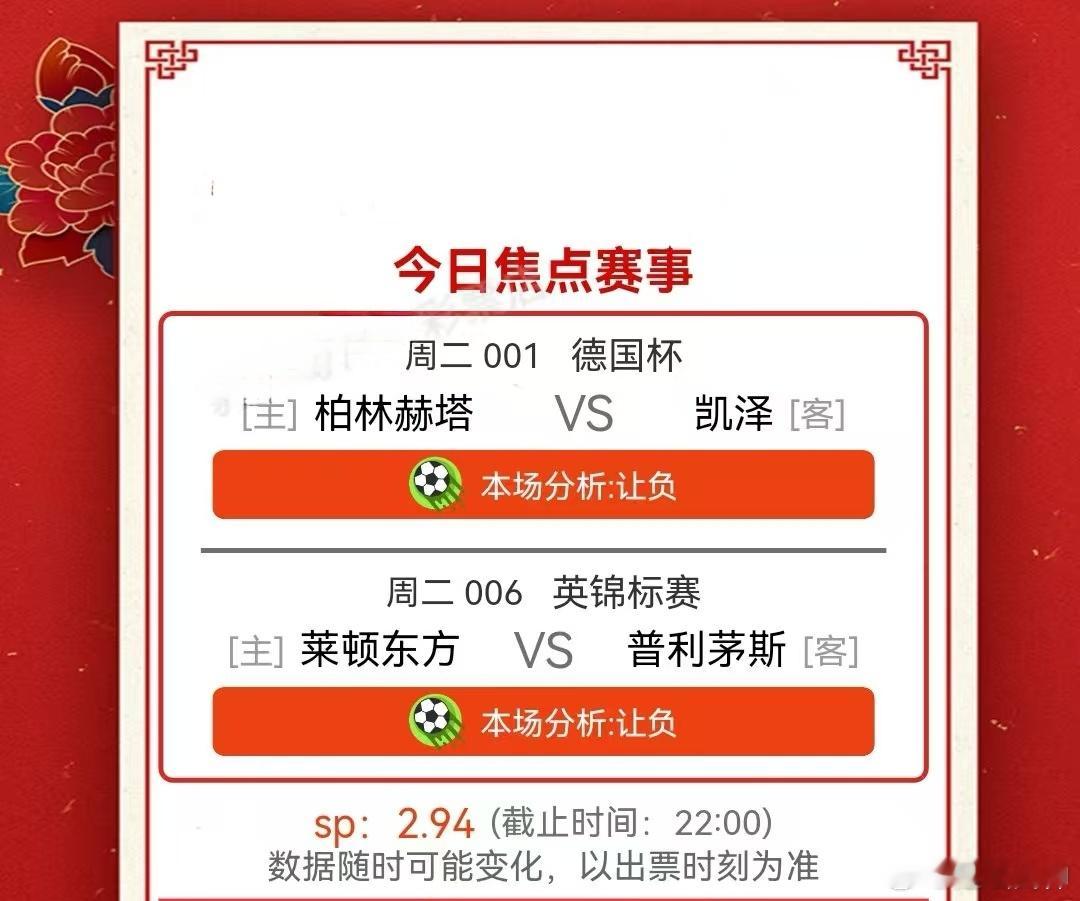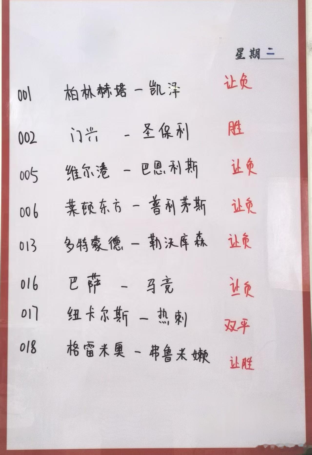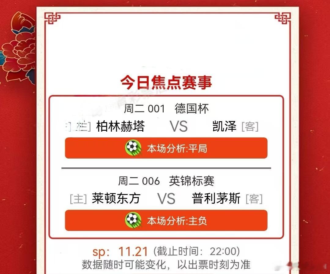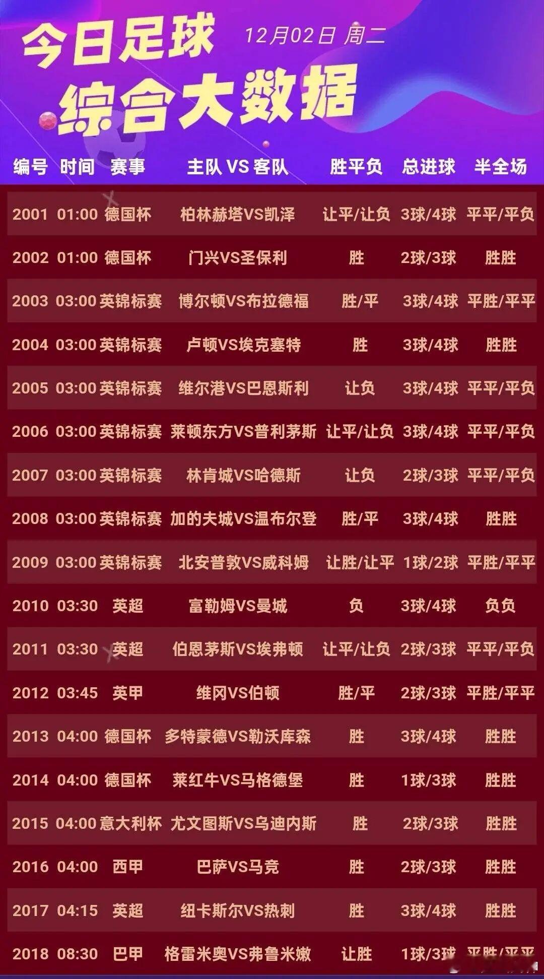 12月2日001 柏林赫塔VS 凯泽斯劳滕002 门兴格拉德巴赫 VS 圣保利 003 博尔顿 VS 布拉德福德004 卢顿VS 埃克塞特城005 维尔港 VS 巴恩斯利006 莱顿东方VS 普利茅斯007 林肯城VS 哈德斯菲尔德008 卡迪夫城VS AFC 温布尔登009 北安普顿VS 威科姆