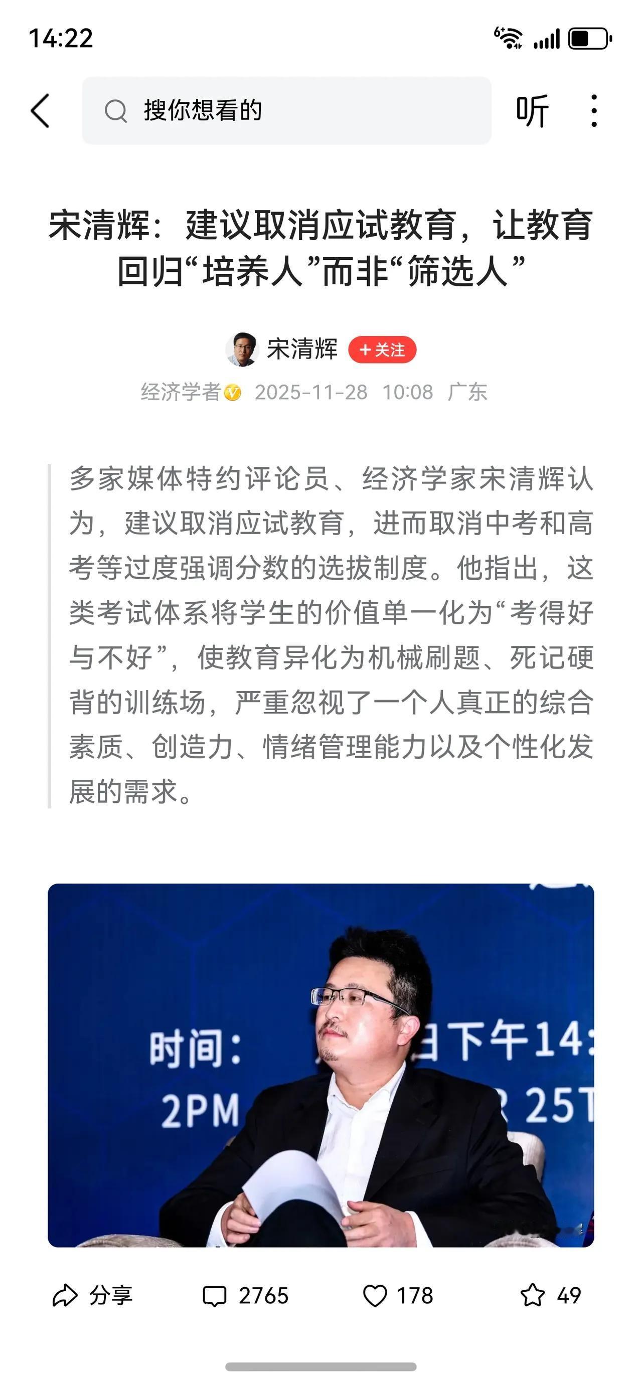 不用教育“筛选人”,要用什么筛选?人脉?地位?金钱?如果没有筛选机制,普通人的孩子更没有机会上好大学,进好单位。不考试,推荐,当前社会环境谁能保证被推荐者的道德水平,谁能保证录取者的道德水平,怎么才能做到公平公正。普通人只要凭分就能上对应的学校,这才是最公平的。许多单位注明招人只要985、211毕业生,是社会公平的体现,如果普通本科就能进,老百姓子女一点机会都没得。