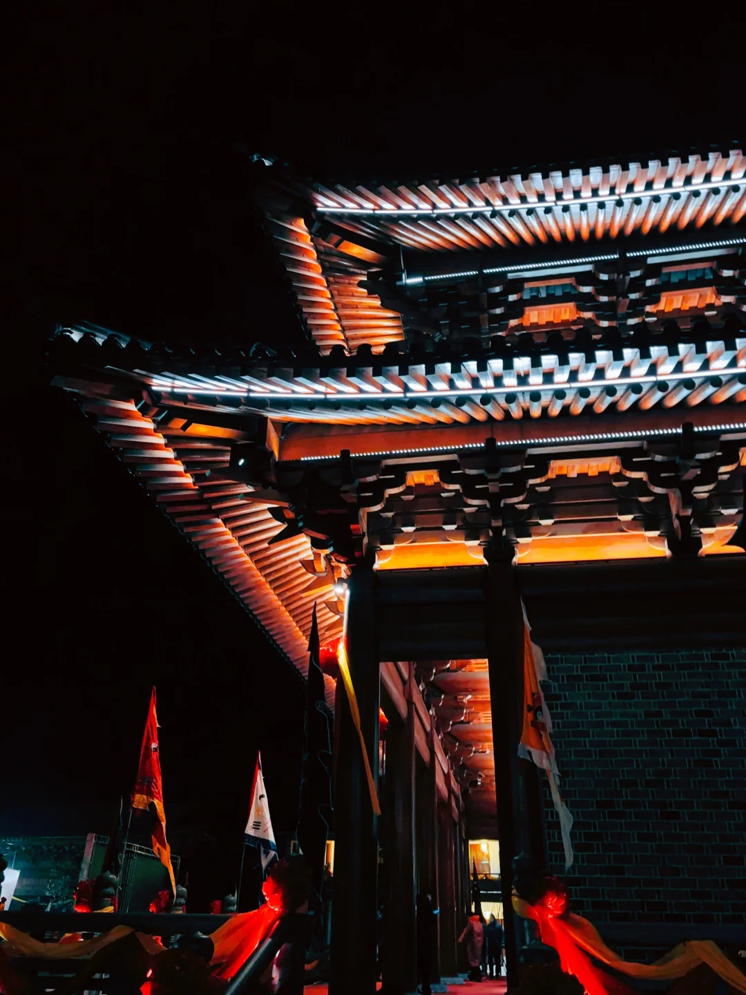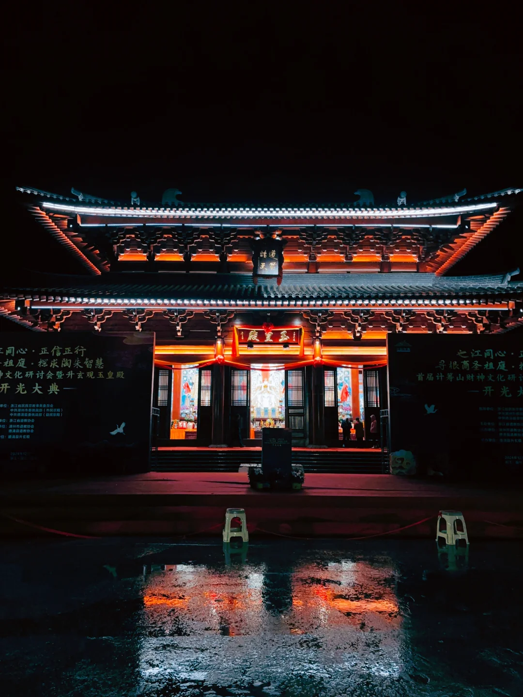 ☯️凌晨4点半的天还没有亮,大殿的灯也还开着,远处望去特别漂亮。