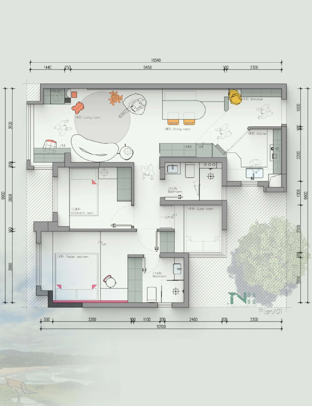 设计需求: 1、可接受拆墙,但不大拆大改 2、主卧尽量多储物空间,女主衣服多,梳妆台功能可结合主卫 3、书房需考虑居家办公+收纳,书房电脑为台式,双显示器,后期可作为小孩书房 4、客厅阳台全封,洗烘一体,还要一个可以办公的区域 5、厨房不做开放式,冰箱尽量在厨房 6、公厕干湿分离,洗手台可以开放式
