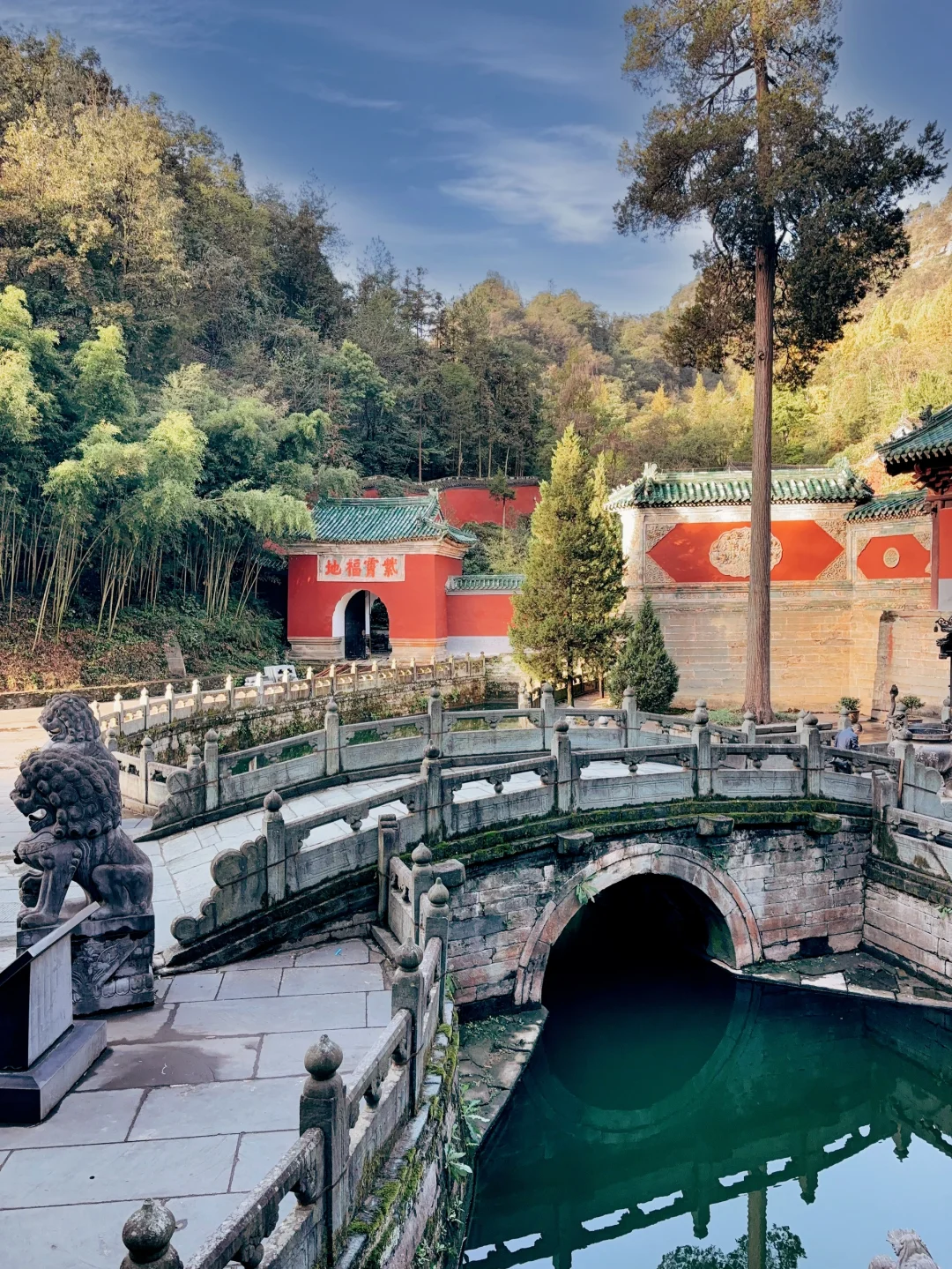 🍀武当山上分布了9宫、8观、36庵堂、72岩庙、39桥、12亭等33处古建筑群,形成了“五里一庵十里宫,丹墙翠瓦望玲珑”的壮美景观。