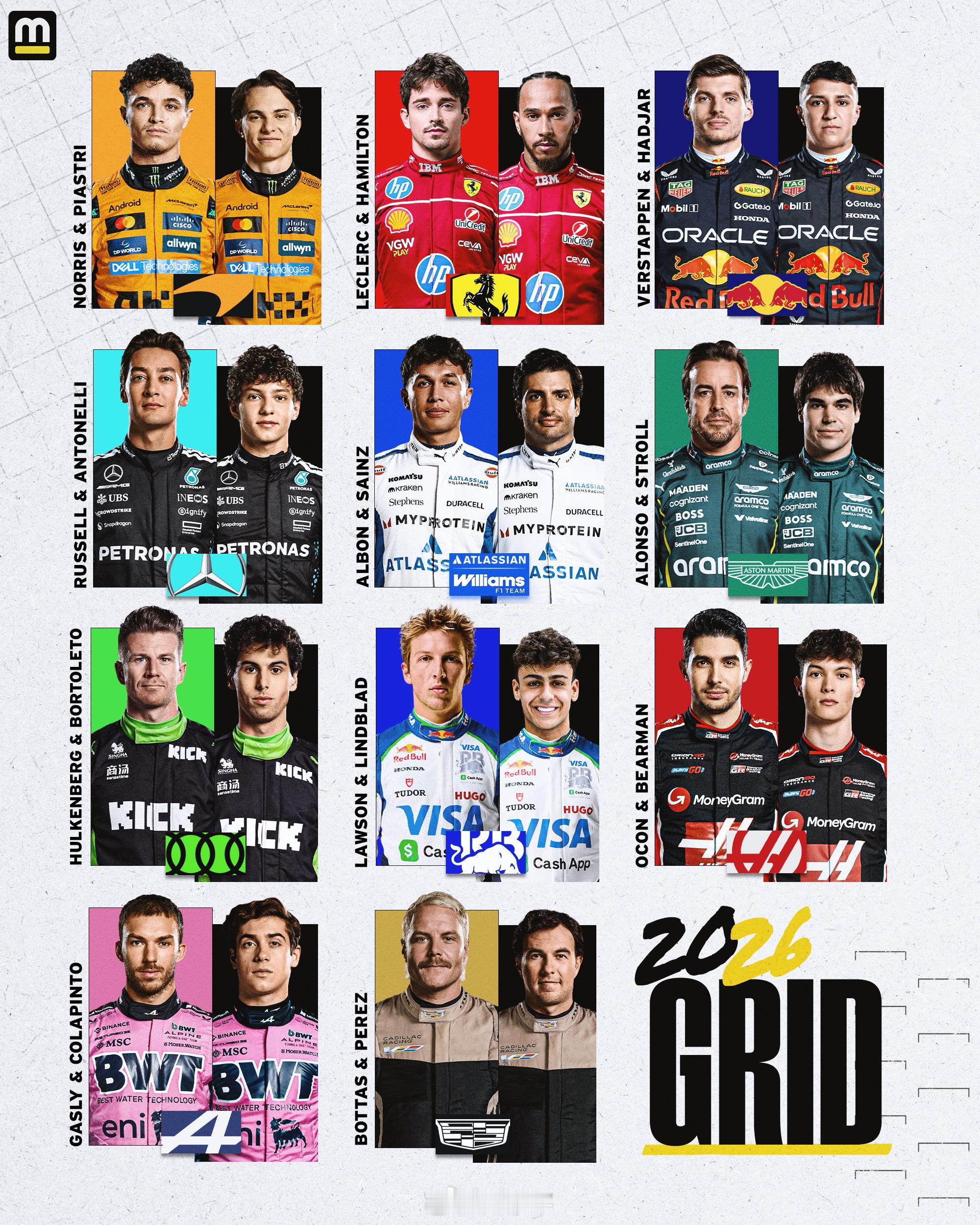 2026赛季车手全阵容(还特么有佩雷兹F12025f1阿布扎比大奖赛