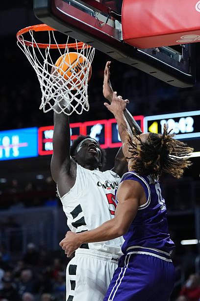 辛辛那提大学以76比58战胜了塔尔顿州立大学。辛辛那提大学的先发大二中锋穆斯塔法-蒂亚姆(Moustapha Thiam)出场21分钟,投篮1中0,得到3分1抢断4盖帽,还有3次失误和4次犯规。 本赛季前8场蒂亚姆场均出场26.5分钟,场均数据9.9分6.9篮板0.5助攻1.6抢断2.2盖帽,还有2次失误和2.1次犯规,投篮命中率55.4%,三分命中率10%,罚球命中率48.5%。 蒂亚姆出生于2006年2月,身高218cm,体重107kg,拥有美国和民主刚果双重国籍,是2024届全美前100位的四星高中生。本赛季从UCF转学加盟辛辛那提大学,有机会冲击次轮签,防守能力出色但进攻端明显显得有些粗糙。