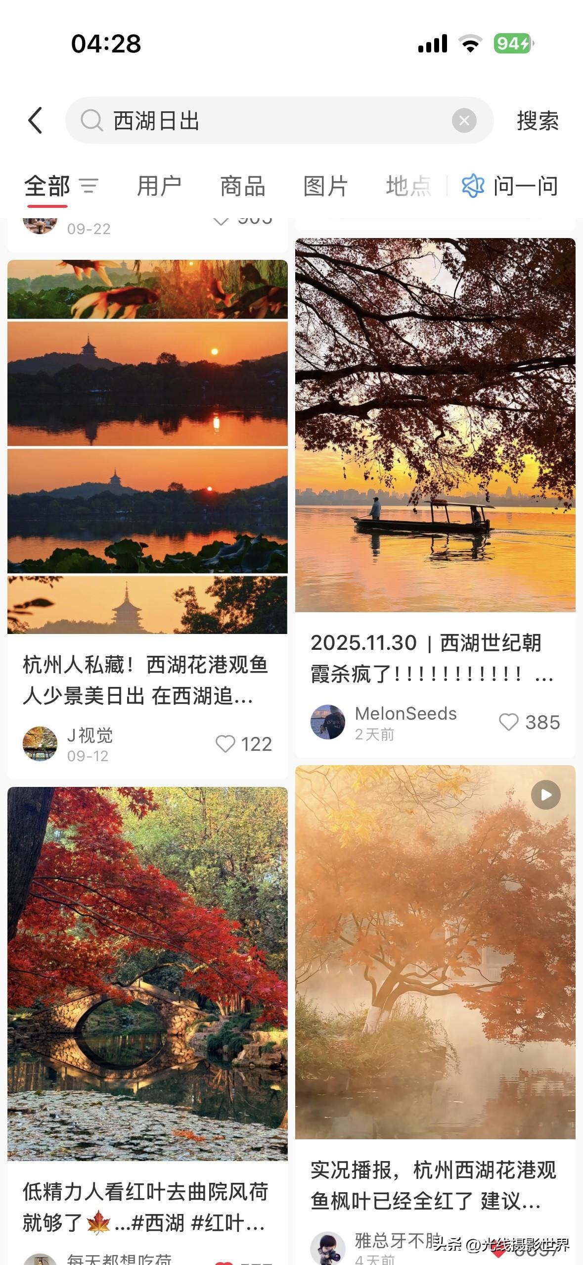 临近冬至,更加适合拍摄杭州西湖的日出和晨雾啦!需要在日出前一个小时就起床的摄影机位有:1,北山街,断桥日出。拍完之后,沿着白堤—孤山,拍红枫为前景的平湖秋月经典机位,拍暖色朝阳照射下的北山街和宝石山及大面积残荷。 2,苏堤,城隍阁悬日日出。地图导航靠近“苏堤春晓碑亭”,拍完日出,赶紧趁着没什么游客,飞奔至绿水芙渠或者曲院风荷之蓼亭,如果等到上午九点以后,这就人来人往,好不热闹。如果运气好,还可以拍到曲院风荷的晨雾。 这个苏堤日出,建议至少去两三次。 3,花港观鱼的晨雾。 4,永福寺的红枫网红机位,只有一大早才干净。 5,最近,法喜寺,灵隐寺,也是很什么的。 光线摄影学院曾兰老师,摄影畅销书作家曾兰老师,今日头条大V曾兰老师,网易云课堂金牌摄影讲师,北京大学出版社签约作者曾兰老师……已经决定在杭州住10个晚上,好好欣赏杭州的深秋金秋,红枫季太值得了!