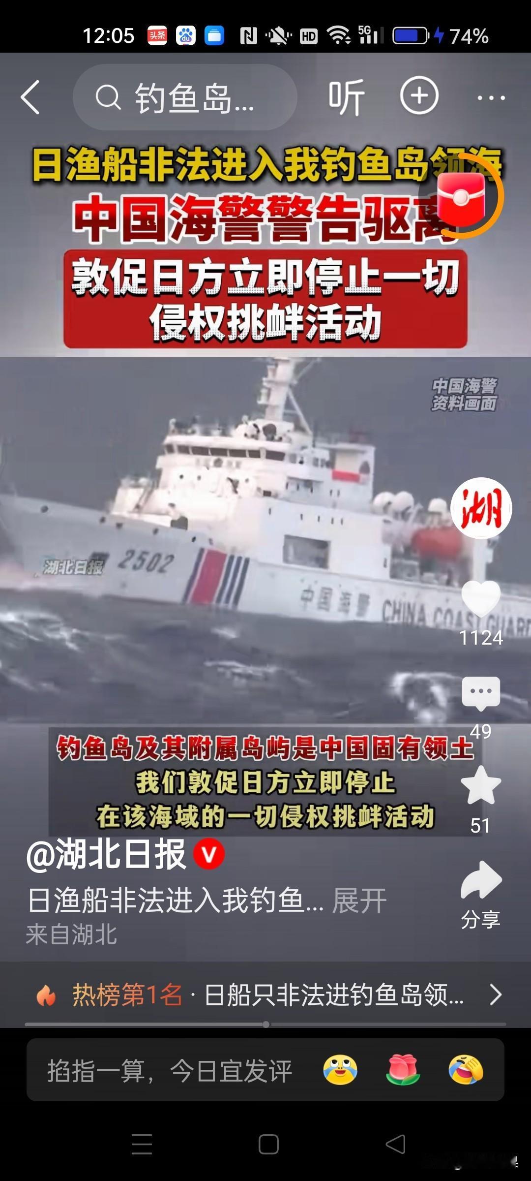 中国海警船,强势驱赶钓鱼岛附近的日本渔船。为什么不给击沉,活捉渔船上人?依法处理其私闯我们领土钓鱼岛的外国渔民?钓鱼岛自古就是中国的主权岛屿,不准许任何国家个人或者组织临近、登岛。祖国领土不容侵犯,守僵卫国是中国海警以照国际法,捍卫国家领土完整的钢铁责任。